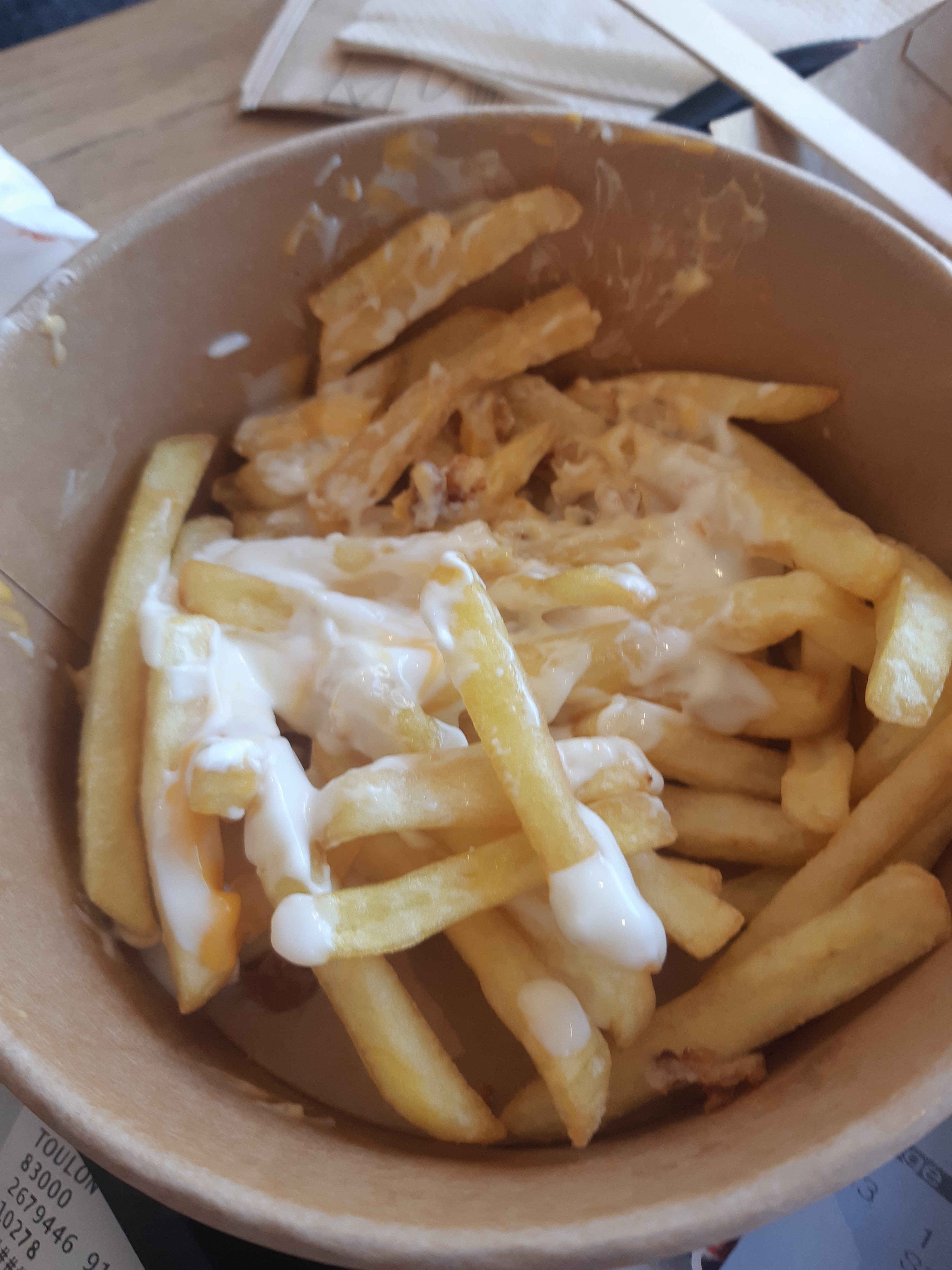 Bonjour, Accueil très agréable par un monsieur très gentil et très à l'écoute. (Cela sera la seule raison pourquoi je n'ai pas mis 1 étoile). Service au top. Néanmoins, pour avoir mangé dans plusieurs tacos, ils ne sont vraiment pas bon. Trop sec, les frittes vraiment dégueulasse (blanche, molle, pas de gout). Niveau taille correct. La barquette de frittes avec le cheddar dessus, tout simplement pas mangeable, faut vraiment pas avoir de gout pour aimer manger ça. Grand manque de sauce (surtout que nous avions demandé un supplément de sauce fromagère), de gout, des fois des bouchés avec vraiment trop de poivres... Au lieu d'investir dans de la publicité et des belles images, faudrait peut-être commencer à faire quelque chose de bon et de correct. N'y a-t-il pas un tacos à toulon qui sache faire des bons tacos ?