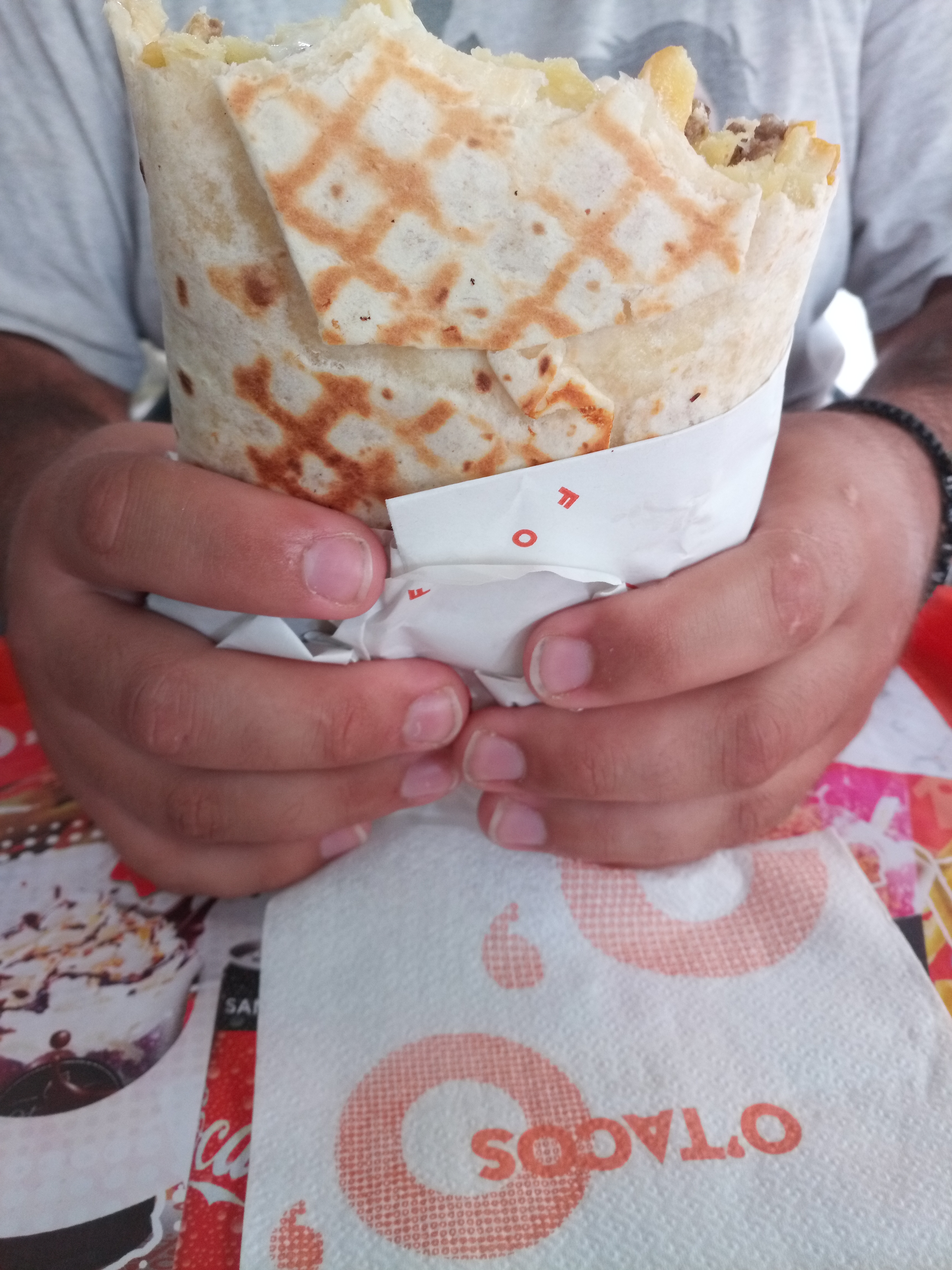 Vendeur de tacos grave sympa, mais la sauce fuego pique pas trop (contrairement à ce qu'il m'a dit 😂)