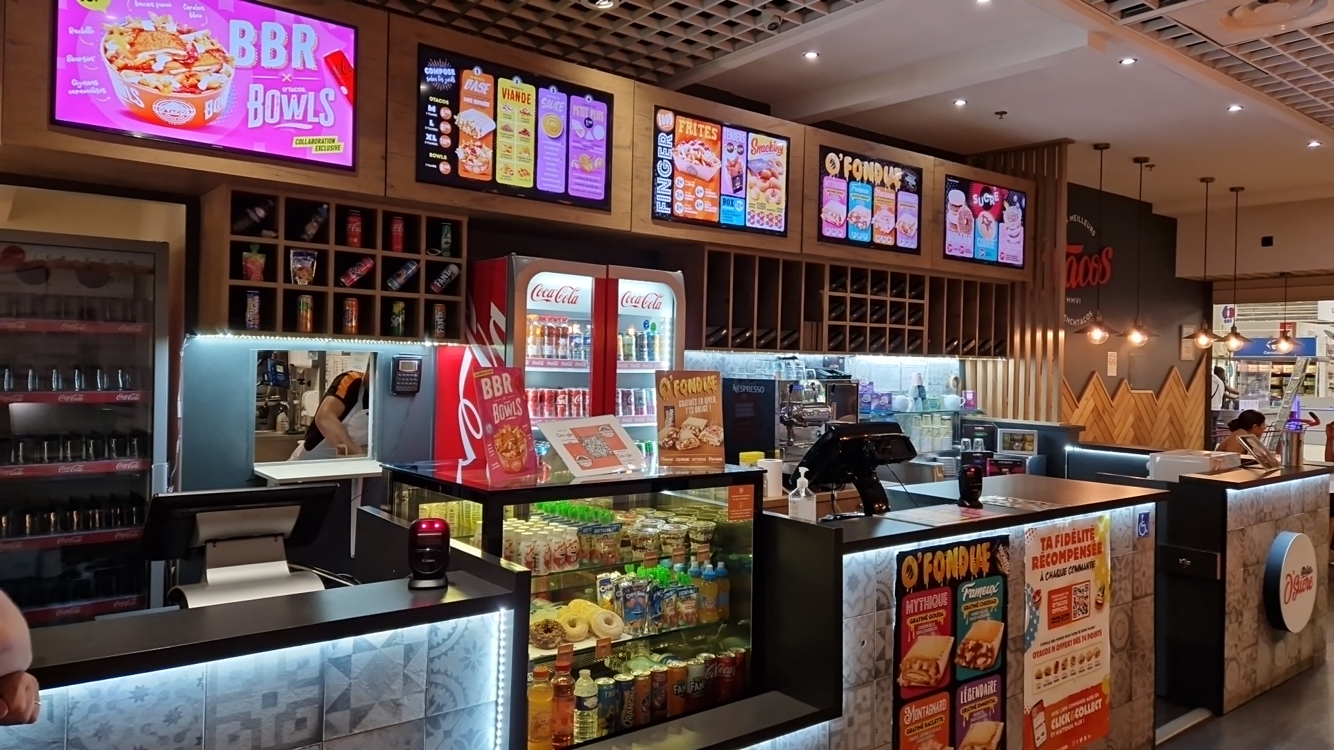 La commande se fait comme dans certains fast-food, à la borne... il n'y en a que 2 dommage surtout pour ceux qui ne connaissent pas le concept et qui restent 1h à choisir leur garniture..mais ça va le service se fait très rapidement...si vous avez un petit budget et que vous êtes en famille le tacos M suffit largement et avec le magasin carrefour à votre droite je vous conseil d'acheter vos cannettes avant. Le tacos M est à 6€90 sans supplément en garniture avec frites à l'intérieur mais la boisson n'est pas comprise. Le personnel est sympa et souriant. Vous pouvez télécharger l'application qui vous fera gagner des points à chaque passage en caisse. Deux petits espaces pour manger sur place avec tables et chaises.