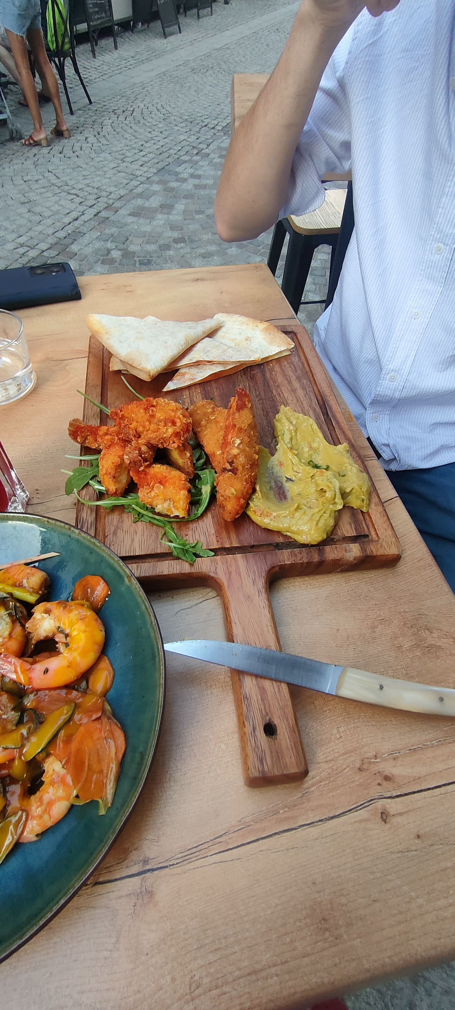 C’est un restaurant de tapas mais qui propose aussi de plats. Carte courte mais tout est fait maison et parfaitement cuisiné ! J’ai pris les crevettes cuites bien moelleuses et avec une épice agréable et une sauce mangue avec des beaux de mangue, 16,50€, prix raisonnable car une dizaine de crevettes. Mais sans accompagnement (façon tapas) donc j’ai demandé petit bol de roquette et tomates cerise. Avons aussi pris assiette de charcuterie avec du très bon jambon blanc persillé. Avons pris un cornet de patates douces, délicieusement épicées et bien crousti-moelleuses. Et un crémeux du Jura servi dans sa boîte, très bon, pas trop salé. Mention spéciale pour l’accueil de la jeune fille mais aussi du reste du personnel. Peu de tables donc pensez à réserver.