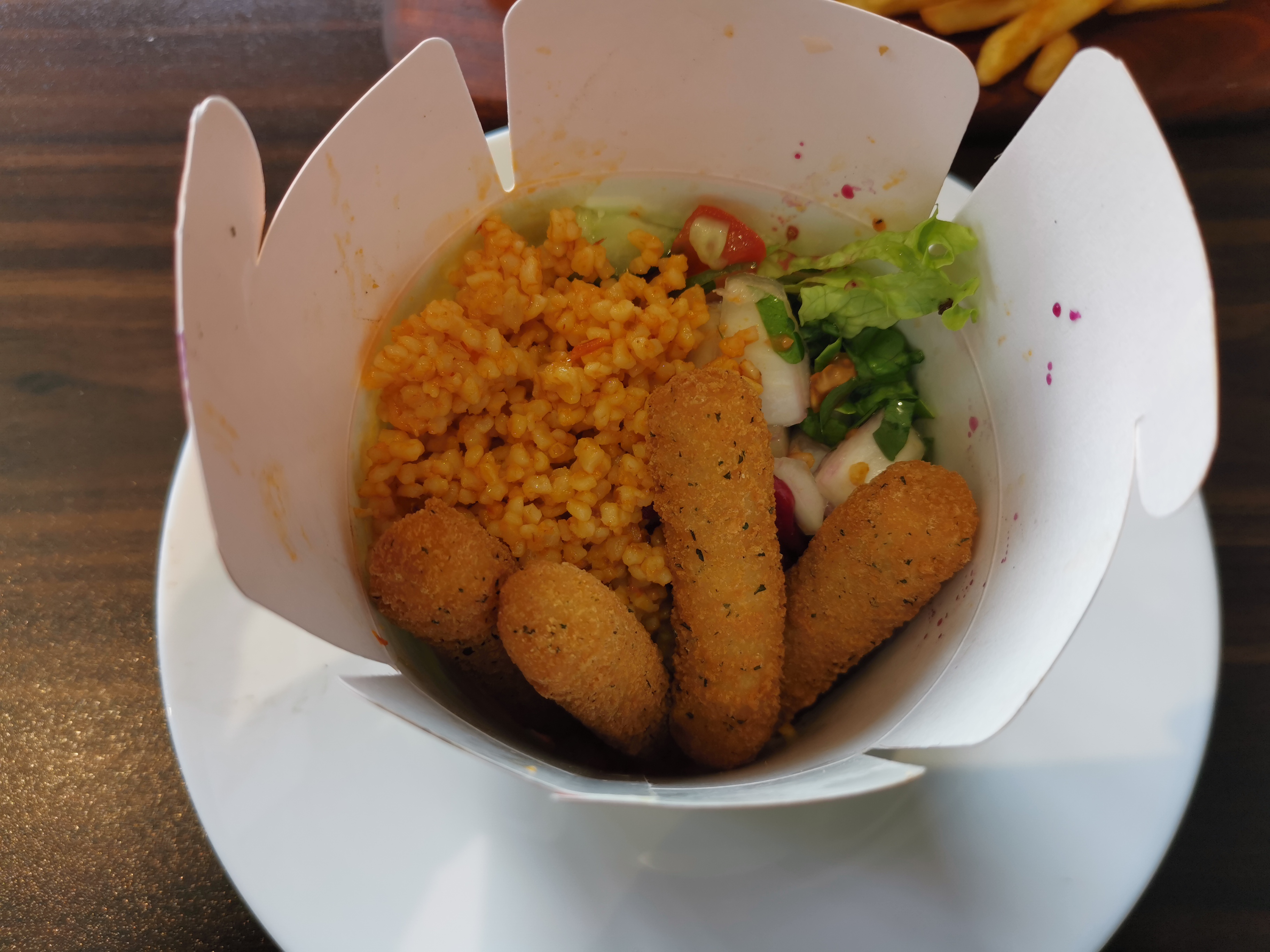 C était très bon on a mangé sur place on a été bien servi tous les employés sont aux petits soins c est très agréable d avoir des gens souriants