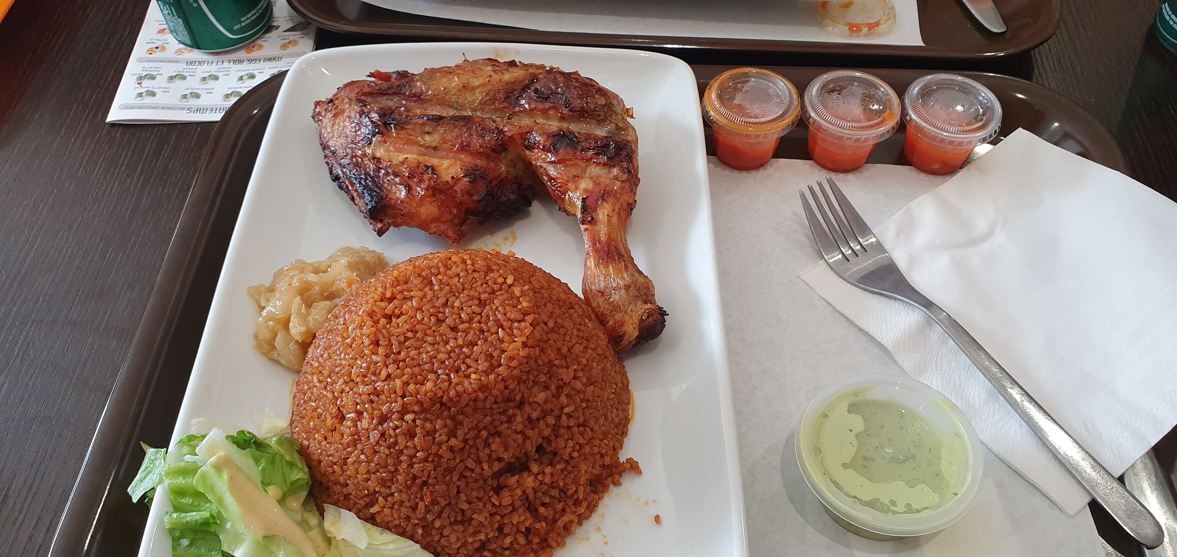 C'est une première dans ce restau. On a mangé sur place. Accueil très sympathique. Le point fort des plats c'est le riz thieb avec poulet braisé. Brochette de poulet bonne. La sauce verte bonne. Banane aloco bien mûre au top. Le pastel au thon. Je recommande !!