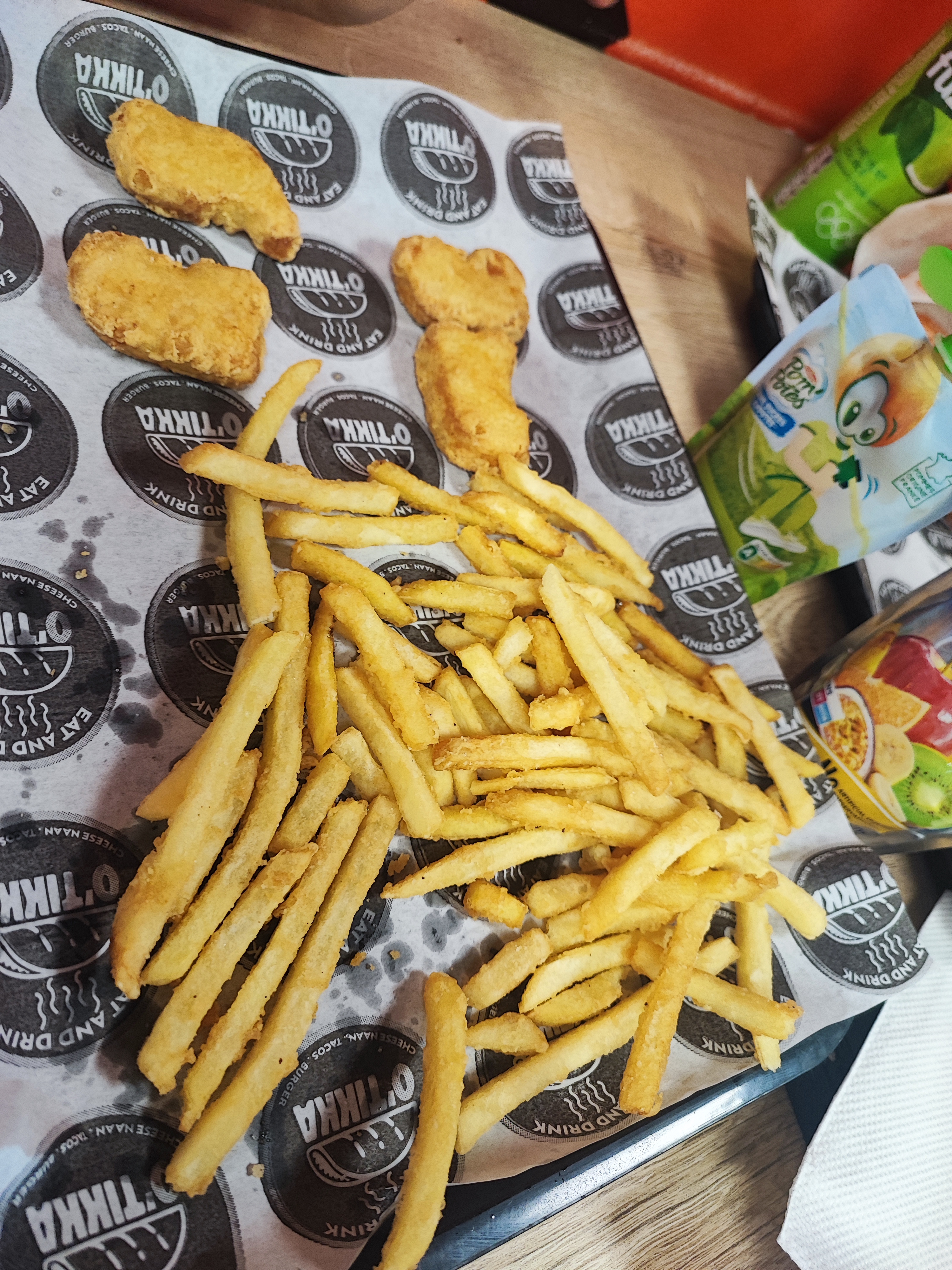 Nous nous sommes rendu ici sur lecture des avis. Les tacos hamburger naan sont très très bon! Bémol sur les frites qui sont cuite probablement dans la la même huile que la panure ce qui les rend pas très bonne ... Et je trouve dommage qu'à la prise du menus, ce ne soit aussi clair . J'ai commandé un naan , on m'a imposé frite et boisson alors que je n'avais pas stipulé de menu... Menu enfant un peu cher ...