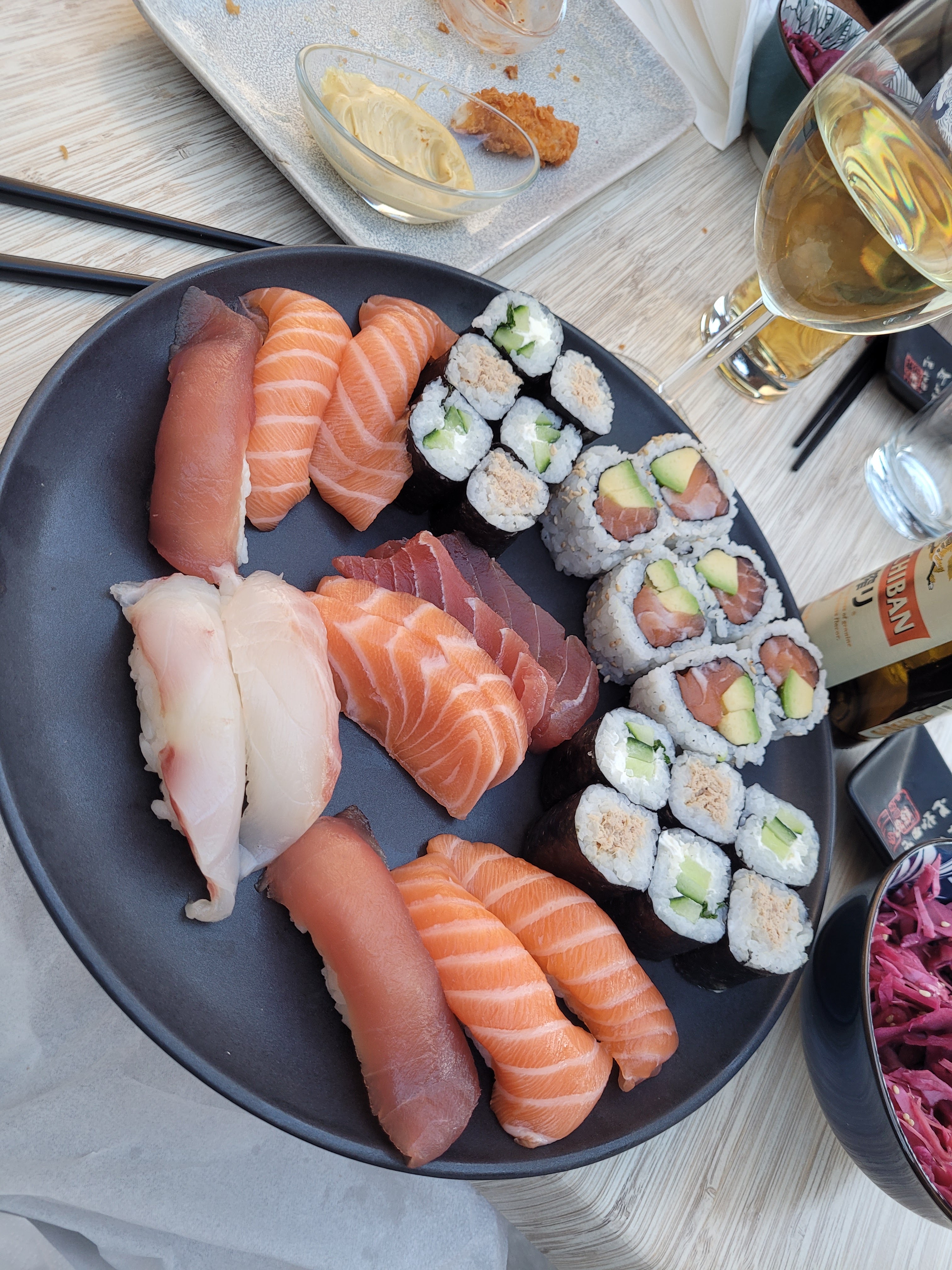 Avec mon ami on a super bien mangé, les sashimis sont excellent, j'ai jamais aimé le thon mais cette fois si je me suis régalé !! Tout est frais, le plateau à était laissé vide ! Très bon thé pêche maison (doux et savoureux).