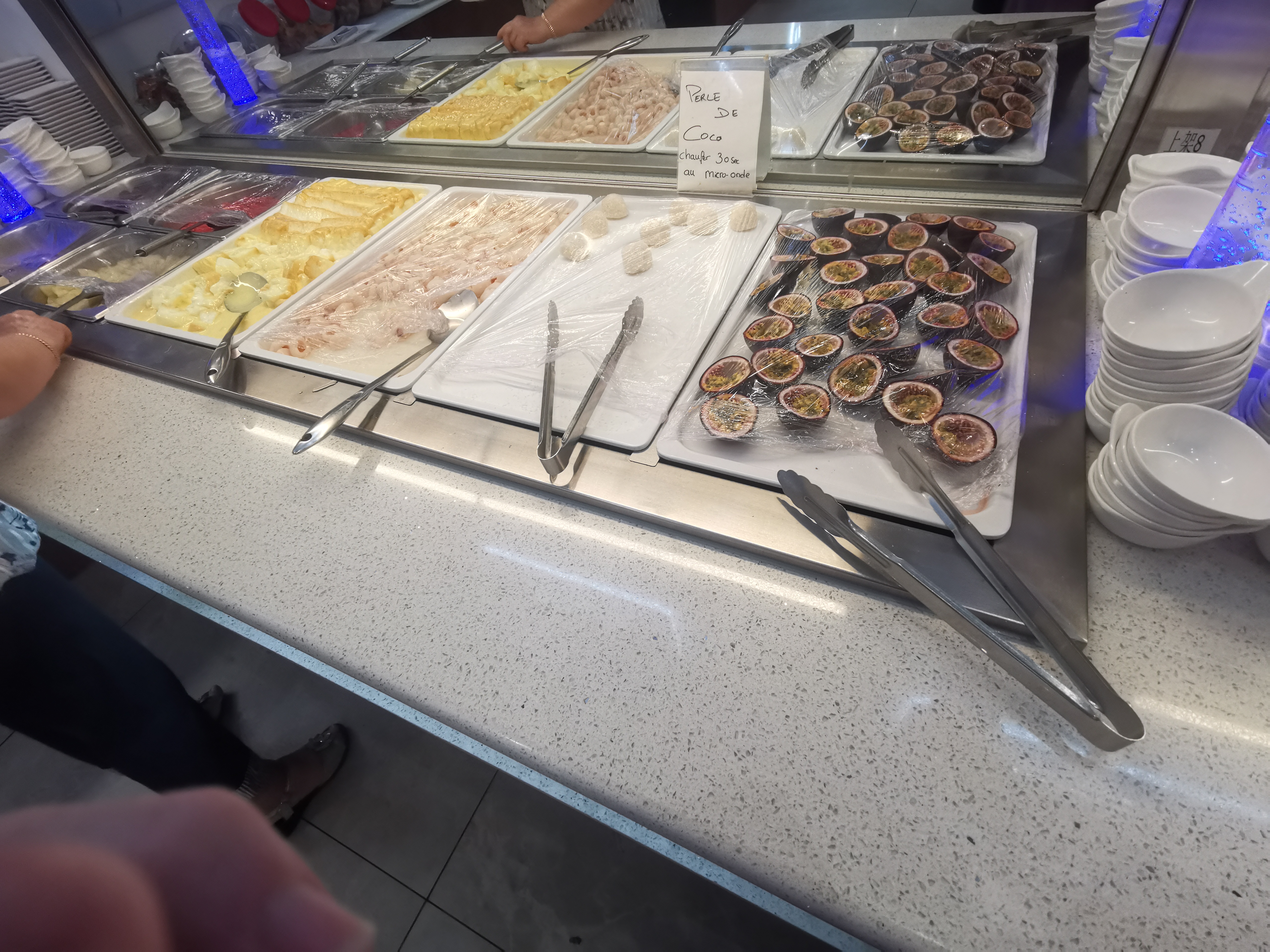 Choix et grande qualité des plats.. Peut convenir à tous les goûts.. Pour ma part j'ai adoré les crevettes vapeurs, crevettes épicées et toutes sortes de poissons ainsi que rouleau de printemps. En dessert les boules coco, et les beignets de banane 😋😋😋