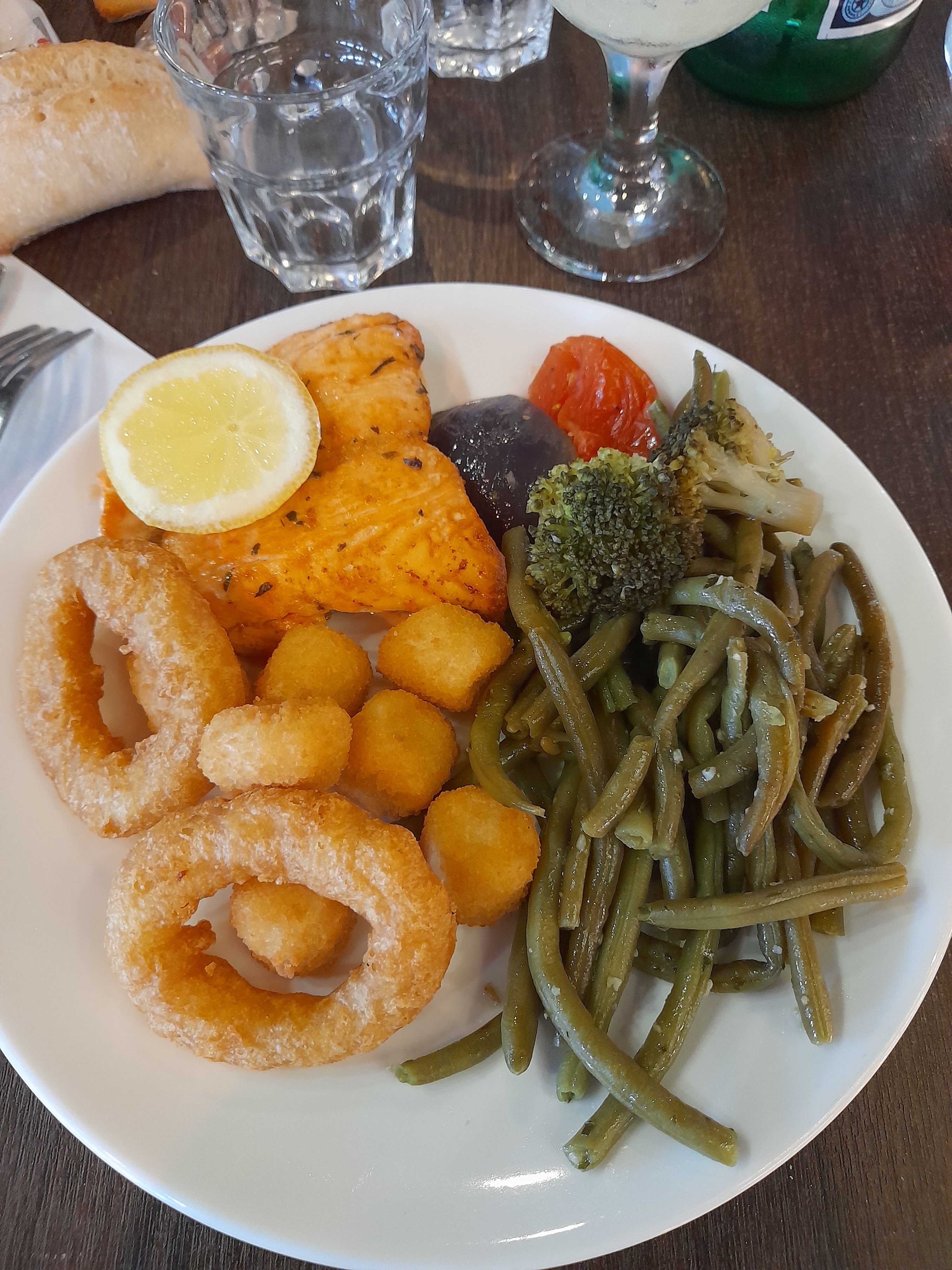 Buffet garni. Manque peut être un cuisinier supplémentaire au grill pour diminuer le temps d'attente. Mais excellent rapport qualité/quantité/prix. Une bonne adresse sans prétention.