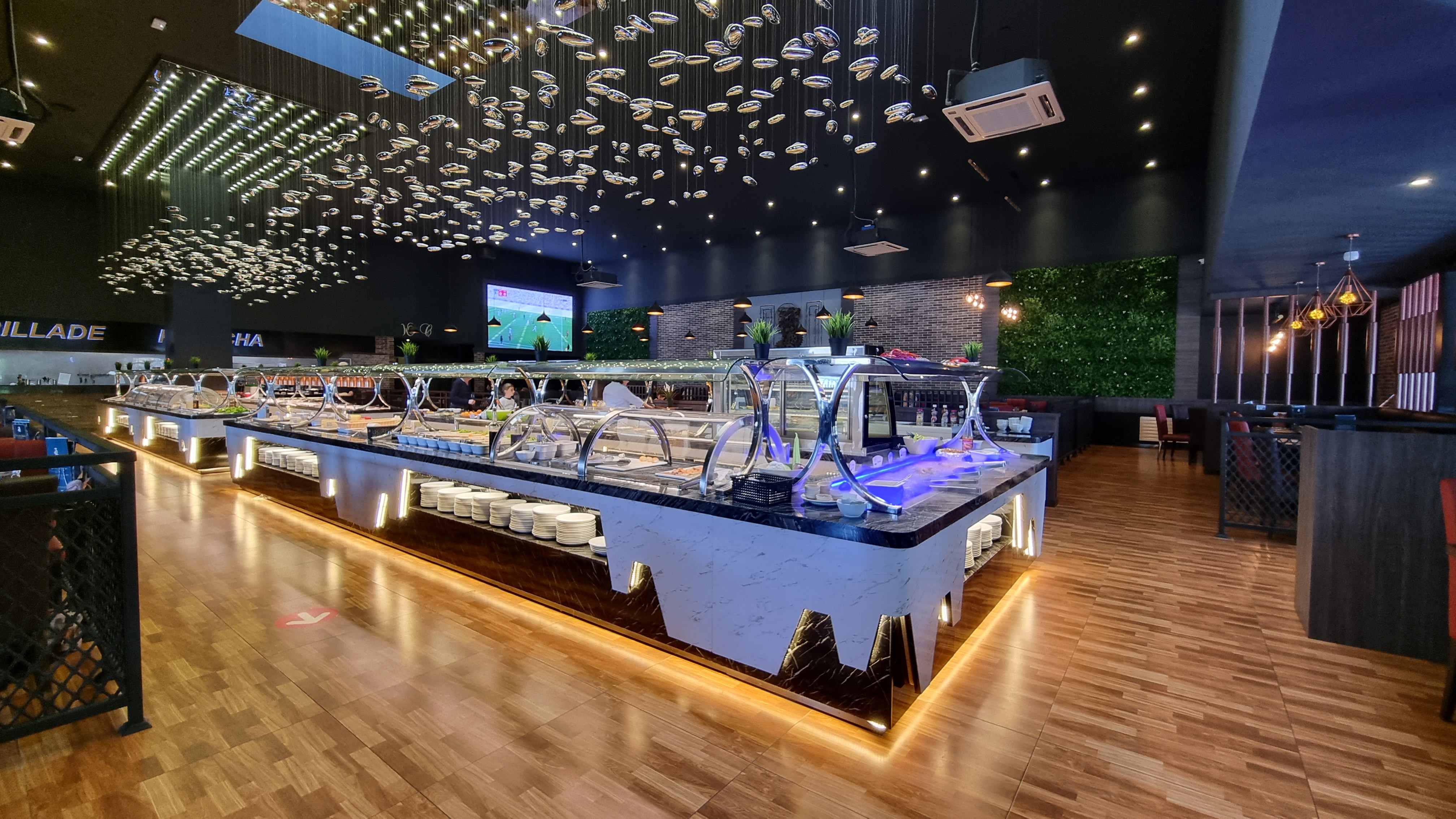 Restaurant avec buffet à volonté très beau en mobilier et décoration, mais certains produits sont de mauvaise qualité outre les huitres, quelques fruits de mer ou fruit exotiques et desserts. De plus beaucoup de bruit, un peu de musique serait bien pour calmer le niveau sonore. On a plus l'impression d'un restaurant asiatique deguisé et plus cher. Cependant le coin grillade et plancha vaut le coup, les pièces bouchères étant belles. Si vous venez pour le buffet, un restaurant asiatique sera plus approprié, tandis pour le service grillade et plancha, vous vous ferez plaisir.