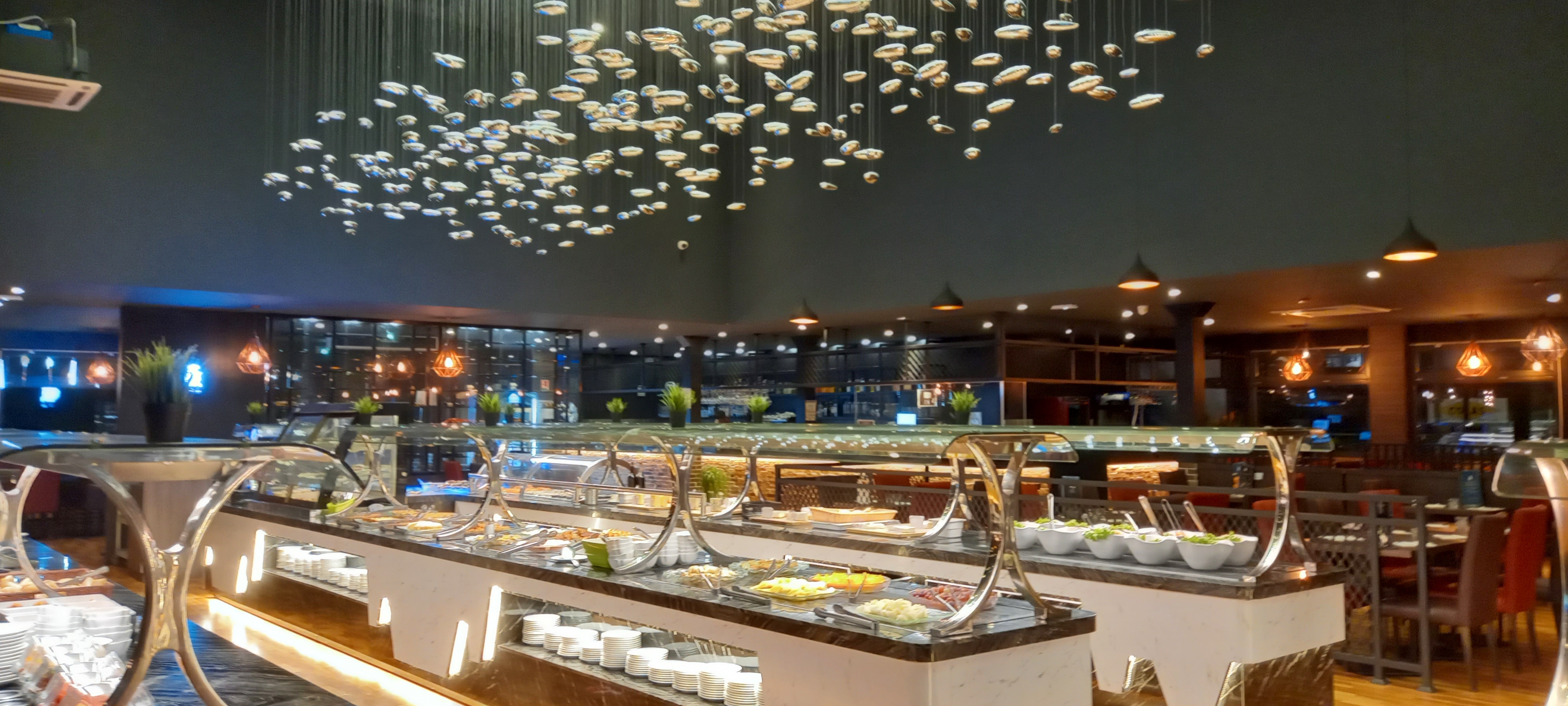 Déjà en rentrant dans le restaurant on a un effet ouha, moderne et vu nul part ailleurs. Possibilité de venir en couple ou famille et bien-sûr en groupe il y à de la place. Question nourriture nous trouvons une multitude de choix (c'est le nourriture du monde). On se lève de table on va faire son petit tour pour regarder ce qui nous fait plaisir. On ce sert et le top surtout dans la conjoncture actuelle c'est à volonté. Il y a que la boisson n'est pas comprise dans la menu à volonté c'est en supplément. Je recommande vivement ce restaurant très bon très serviable au niveau du personnel et ra.pide Bon appétit.