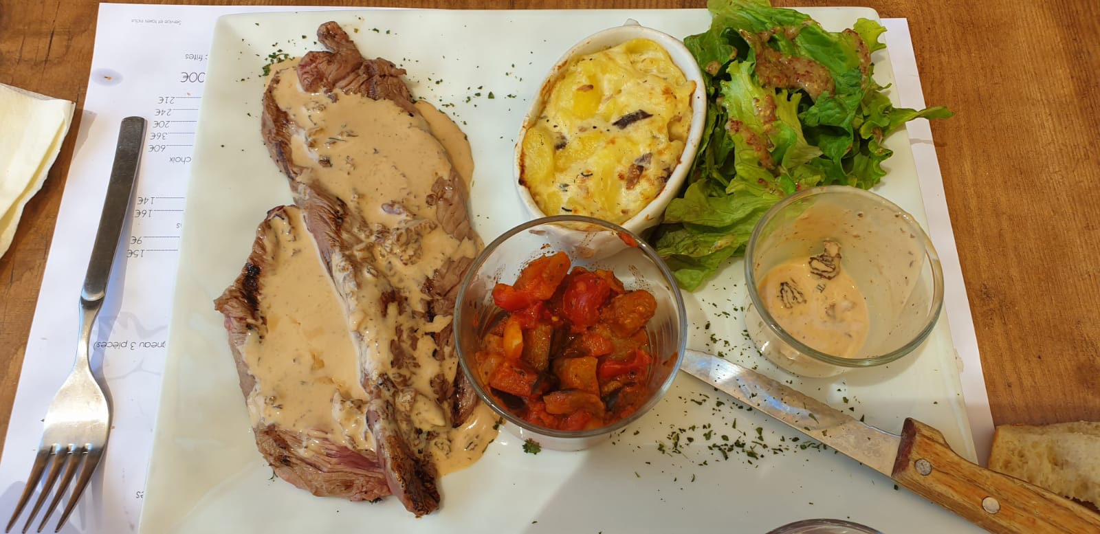 C’était bien mais: Le cuisinier doit ce couché plus tôt cela lui permettra de gérer correctement ses cuisons. Merci au responsable de l’approvisionnement en pain de passer chez le boulanger du village au lieu d’Intermarché. Cela sera plus agréable pour l’assiette de fromage. Au delà de ces quelques remarques qui, je n’en doute pas, vont être rectifié, cette établissement est à essayer.