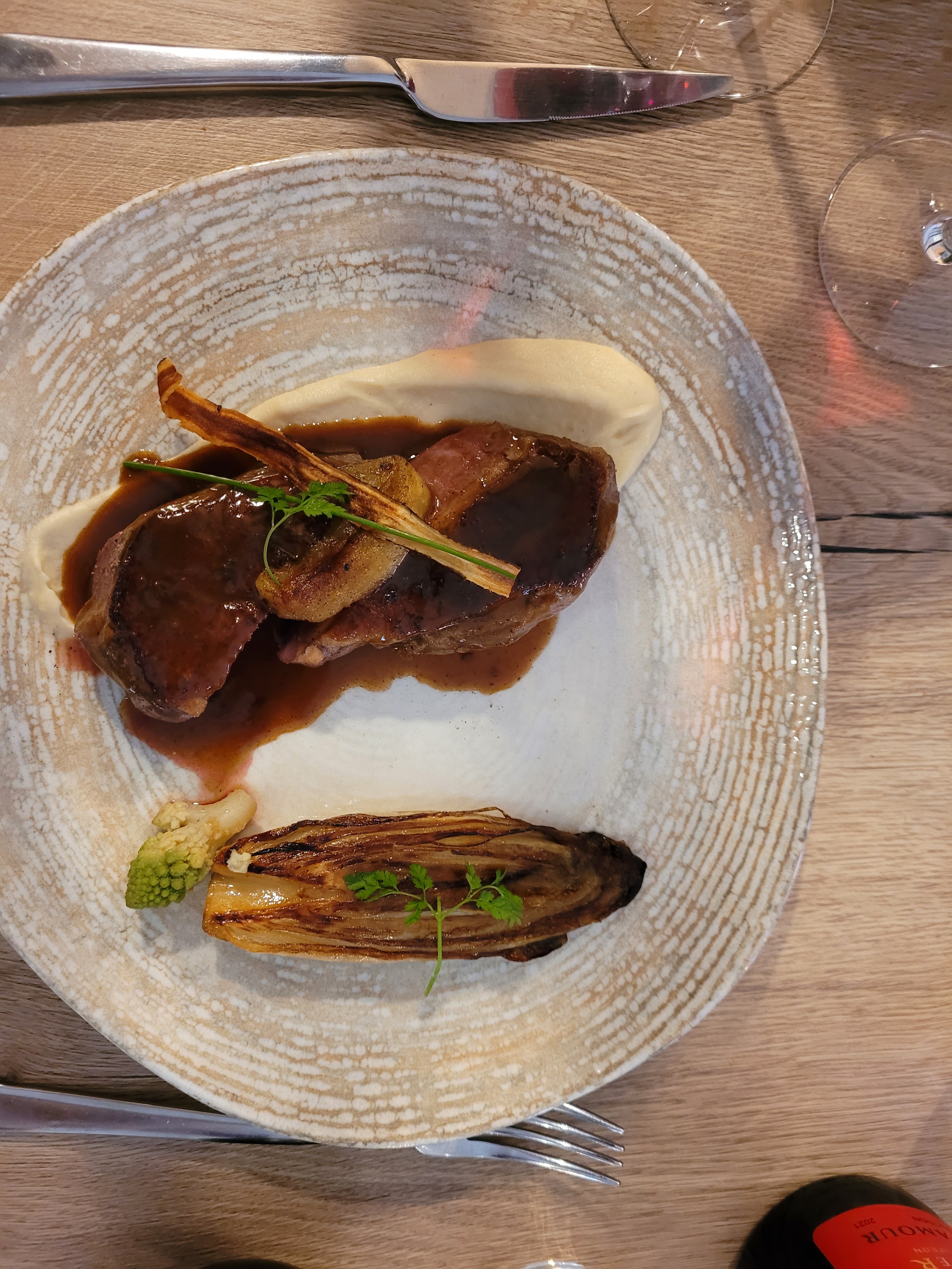 Excellent restaurant, rien à en redire: - Service impeccable avec de très bon conseils sur le vin et très sympathique - Repas incroyablement bon et très recherché avec des mélanges de gouts surprenants Nous reviendrons dès la prochaine occasion!