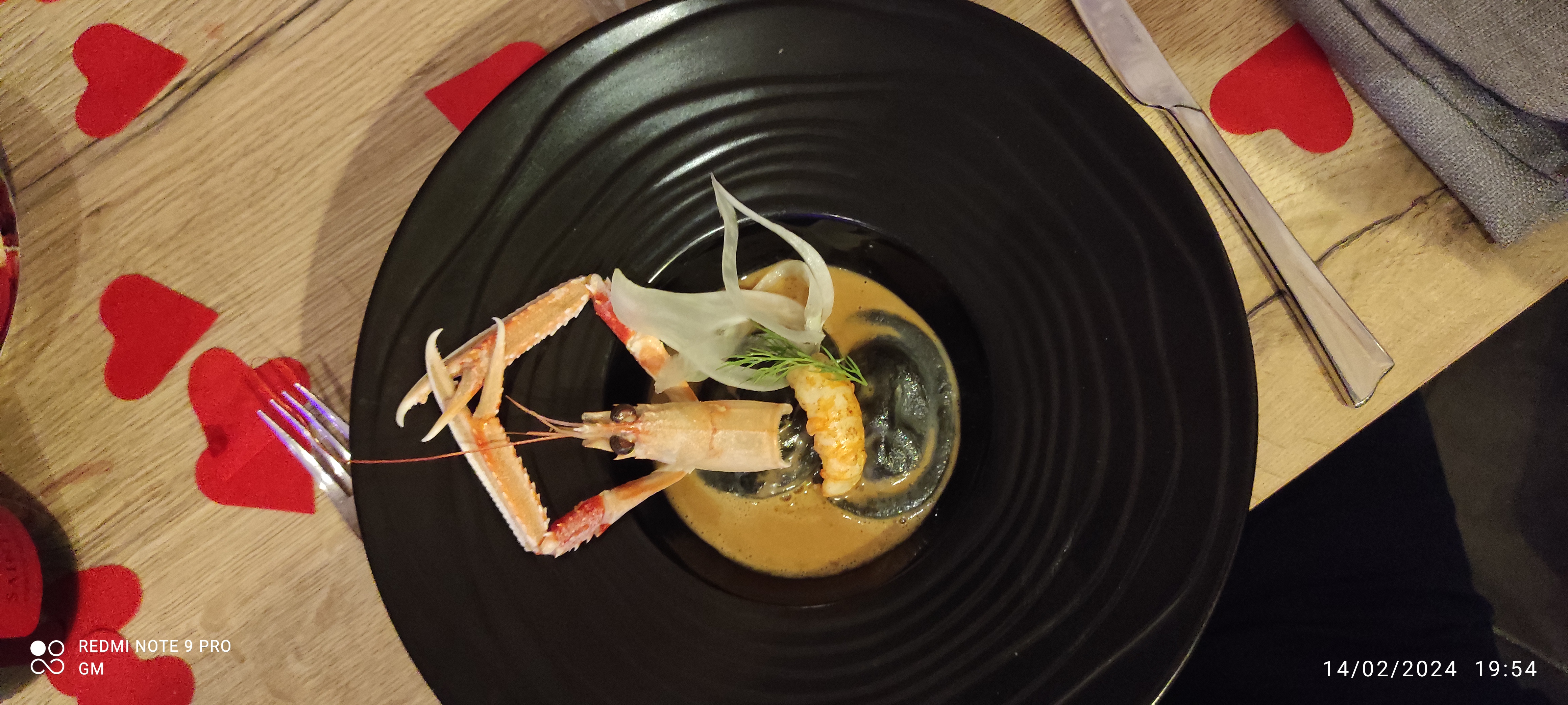 Première fois le jour de la St Valentin ! Juste parfait.! Ce jour là, menu unique : Amuse bouche : Velouté de poireaux reblochon et oeufs de caille. Entrée: Poelée de foie gras sauce agrumes. Poisson : Ravioles aux langoustines et sa bisque. Viande : Filet de veau facon Wellington . Dessert : Suprise pour les amoureux