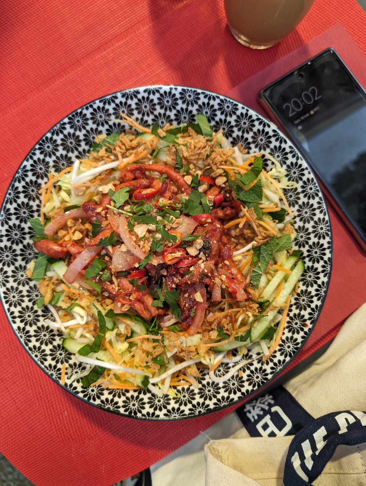 Cuisine familiale pleine de saveurs vietnamiennes authentiques. Les plats sont très frais et très bons, mais dommage tout n’était disponible sur la carte. Les tables en extérieur sont au bord de la rue, j’ai vu beaucoup de personnes emporter leur plats, je pense que c’est une bonne idée.