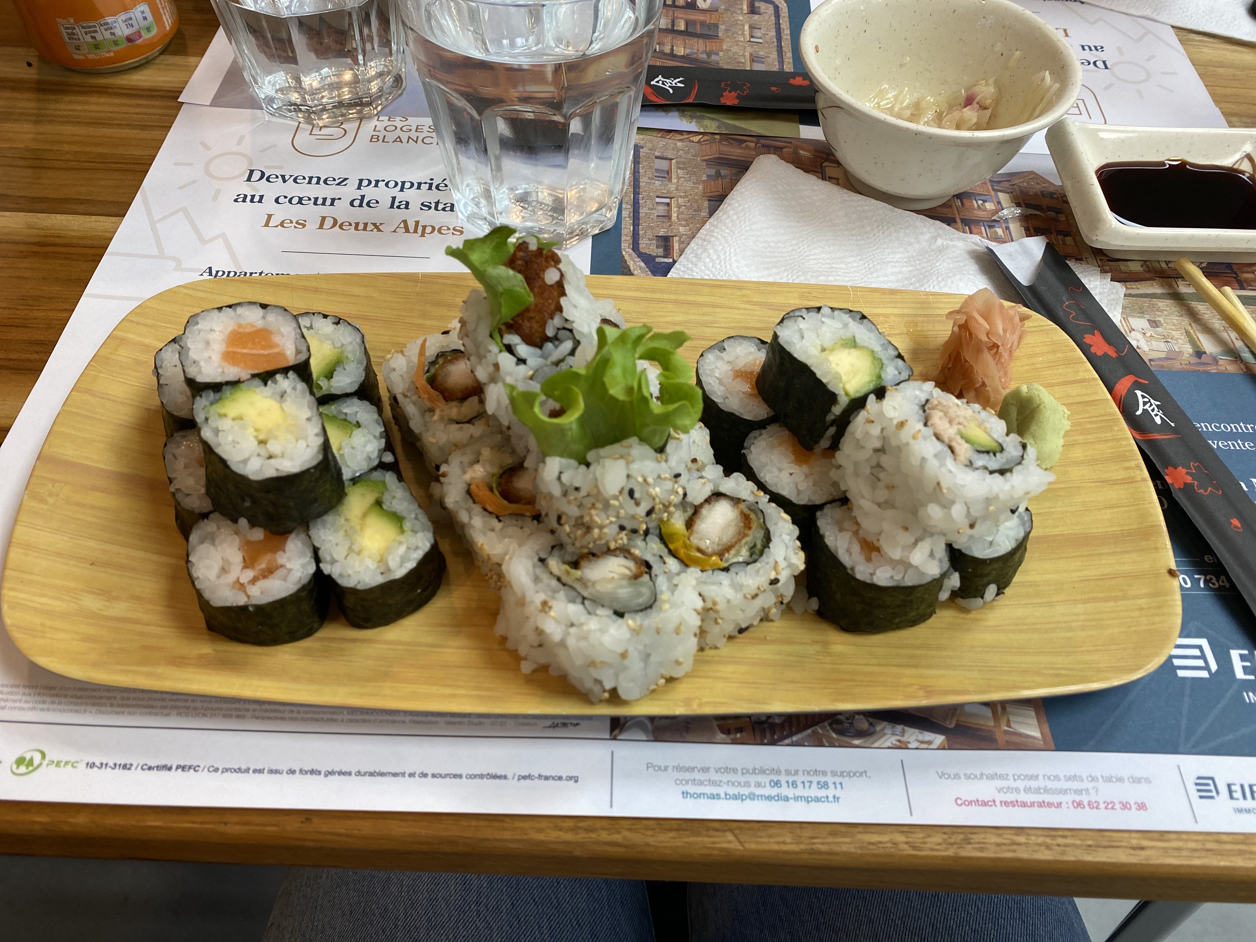 Nourriture délicieuse mais mauvaise gestion. J'y suis allé plusieurs fois pendant mes vacances au ski et une fois, j'ai attendu plus d'une heure pour que ma commande soit prête. Il y a eu aussi une autre occasion où ils m'ont donné une mauvaise commande de sushi. Si vous vous trouvez aux Deux Alpes en dehors de la haute saison touristique, cet endroit vaut vraiment le détour.