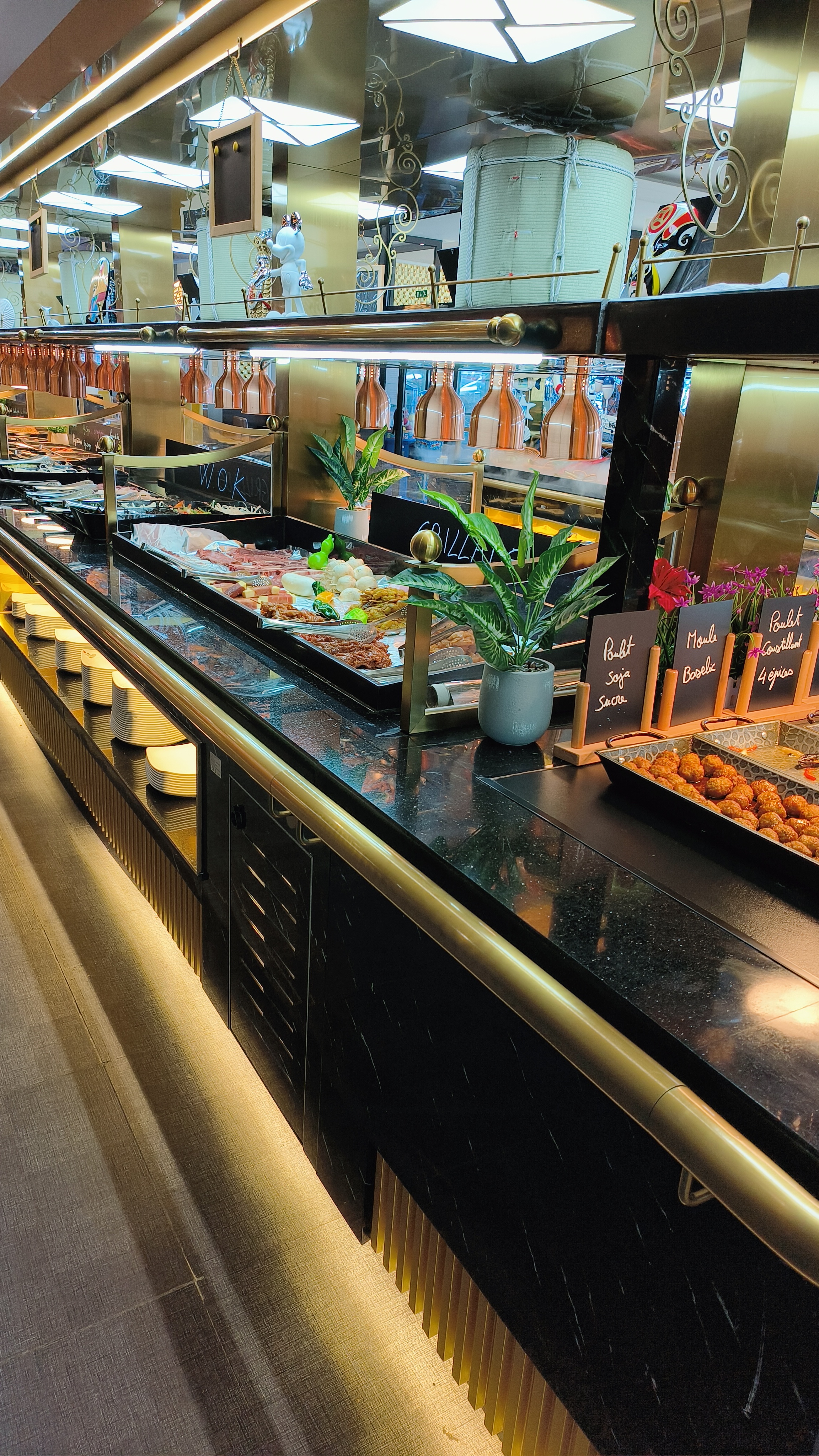 Une très grande salle, un buffet régulièrement réapprovisionné et un personnel est plutôt agréable. Nourriture asiatique mais pas seulement (charcuteries, fromages…) et des produits qui sortent de l’ordinaire (algues, fruits de la passion…). Une adresse à partager donc!