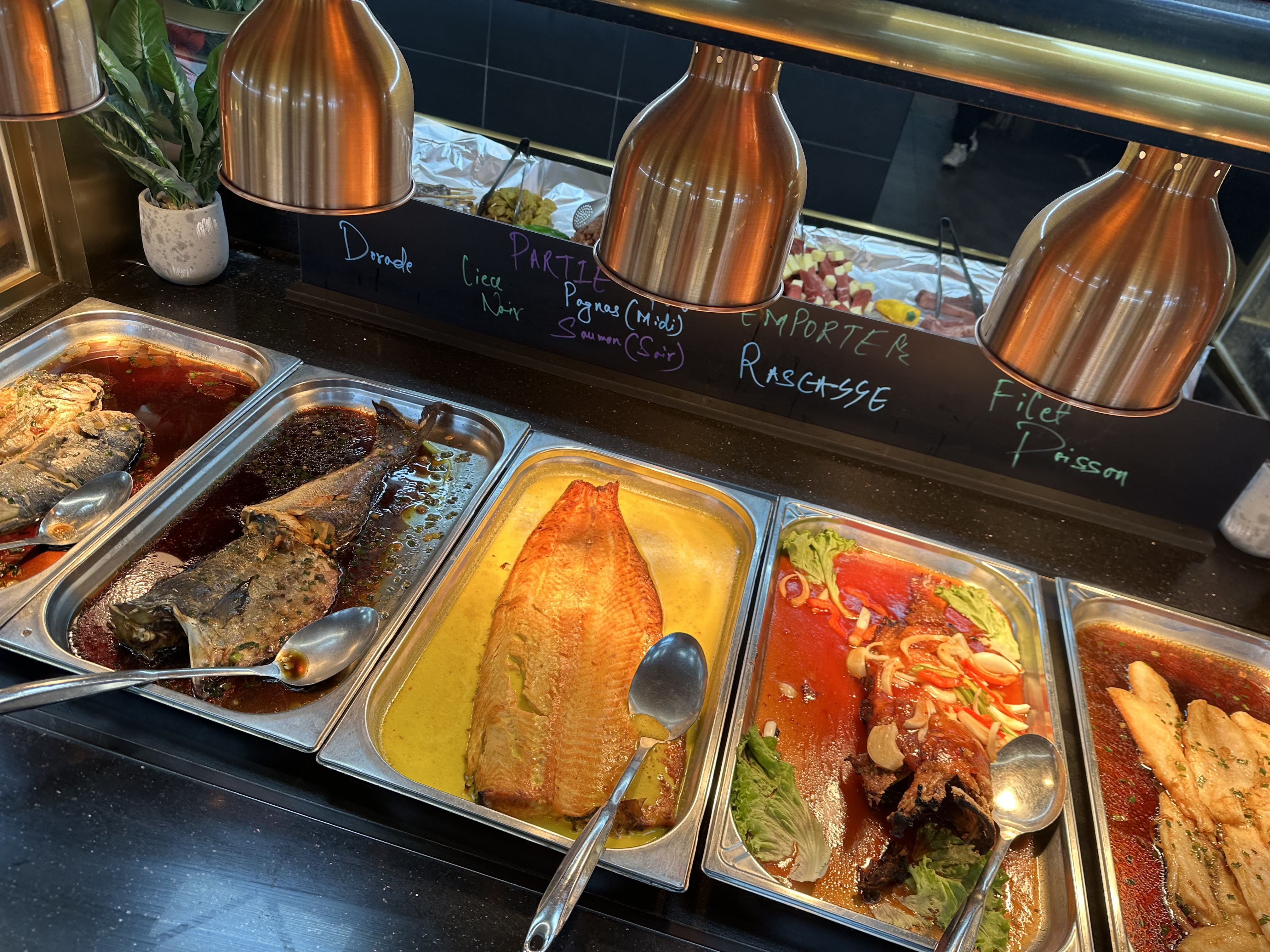 Pour moi le meilleur leurs huitres très bien et belles , fruits de mer frais même la mayo est excellente.crevettes tempura croustillantes et moelleuses poulet croustillant excellent et que dire des poissons saumon et turbo délicieux tout est bon chez eux je ne parle même pas des desserts au top, je ne taris pas d éloges sur eux tellement c est bon et nous en avons fait plusieurs avant vraiment c est un plaisir d y aller.seul bémol le monde le bruit mais succès oblige