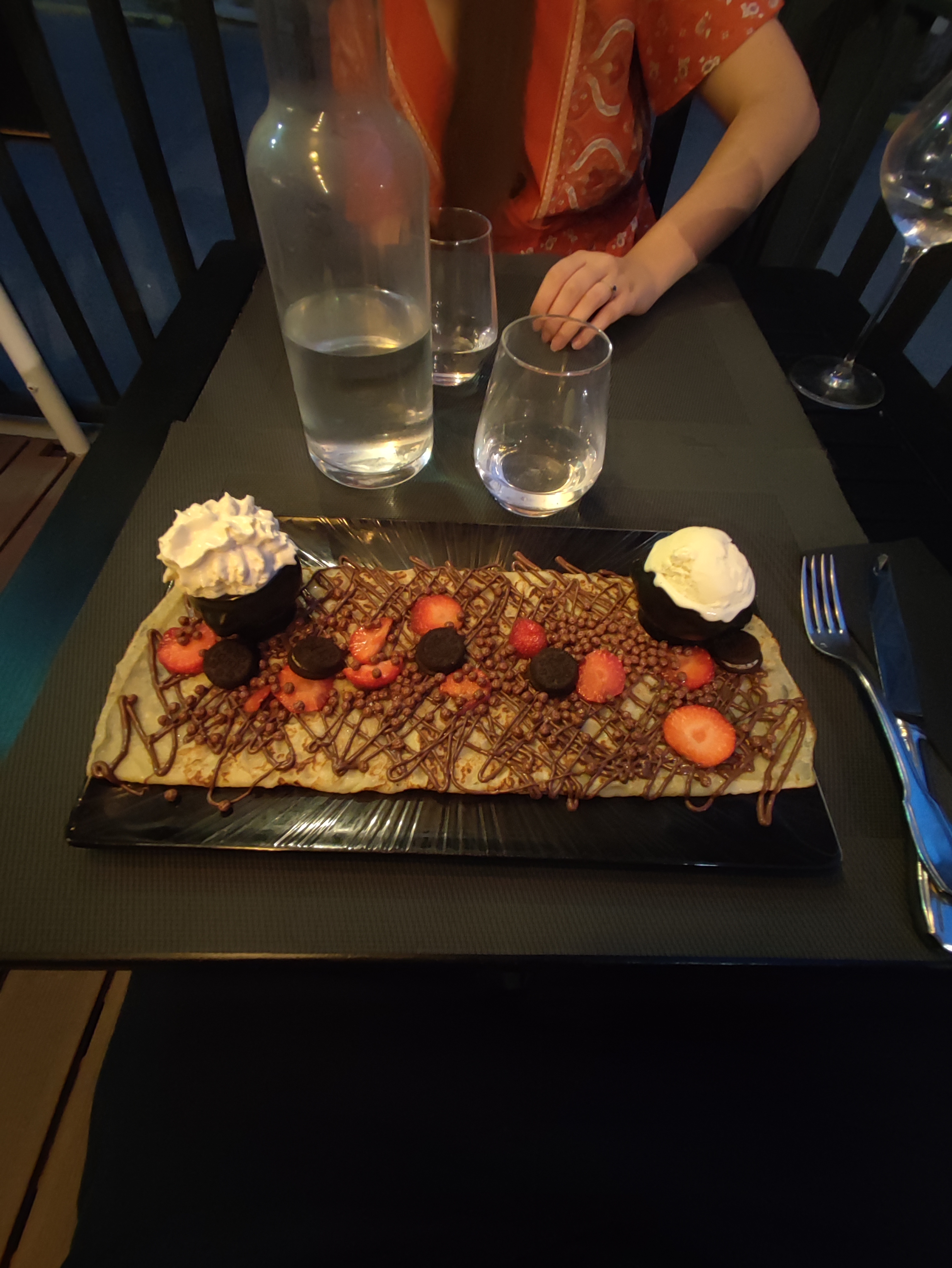 Cadre et terrasse très agréable. Les plats sont bons en revanche manque de garniture. Sur la crêpe prise en dessert en plus de la gelée de menthe et de la glace, je n'avais que 4 minuscules morceaux d'ananas (et vraiment 4 ce n'est pas juste une façon de parler) ça fait vraiment très très léger...