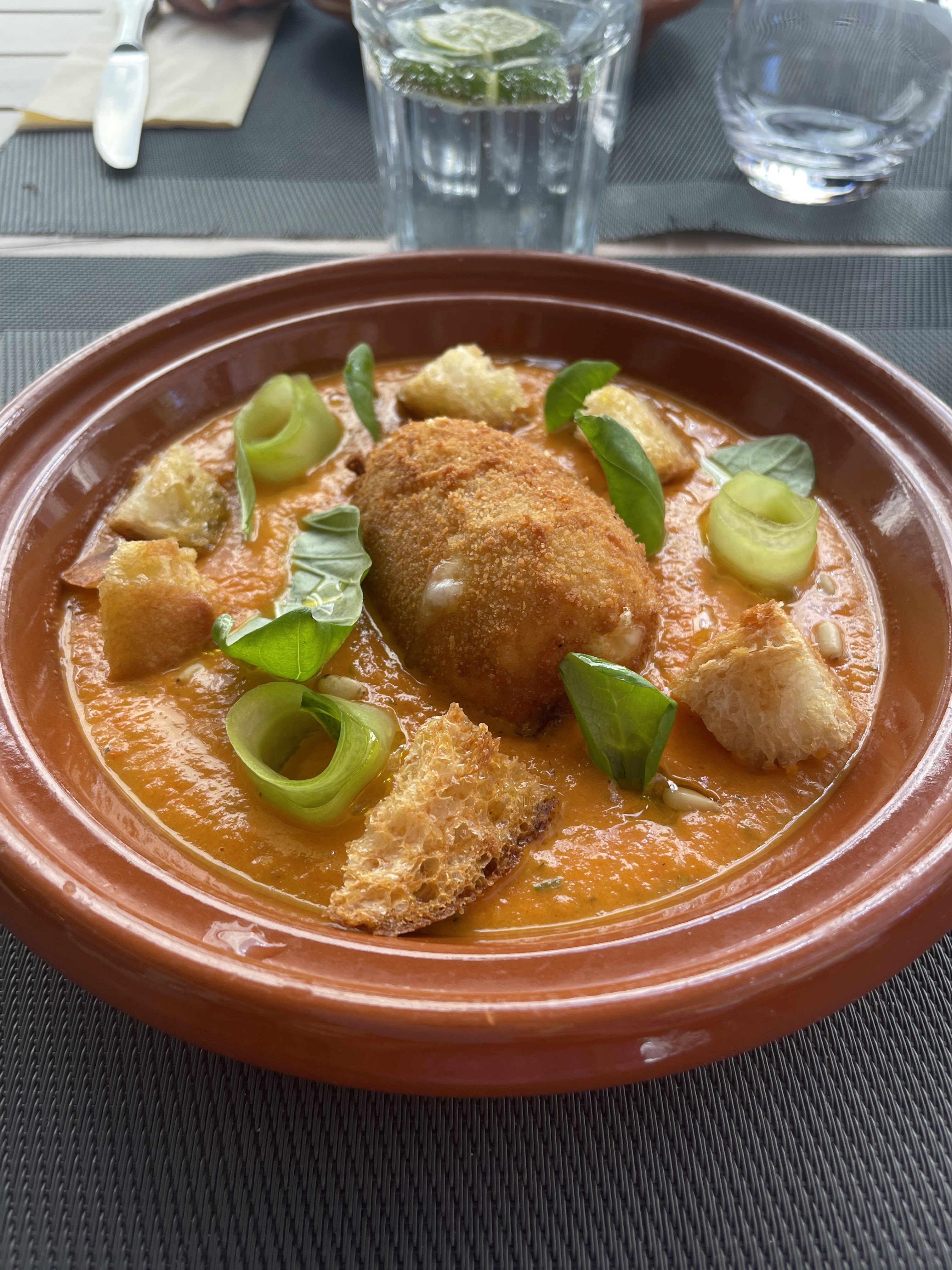 Une jolie terrasse dans un endroit plein de charme. De la très bonne cuisine pour un prix très correct. Un excellent gaspacho tomates, sorbet concombre basilic ! De plus, le service est très agréable : attentionné sans être envahissant, M. Et Mme sont très souriants.