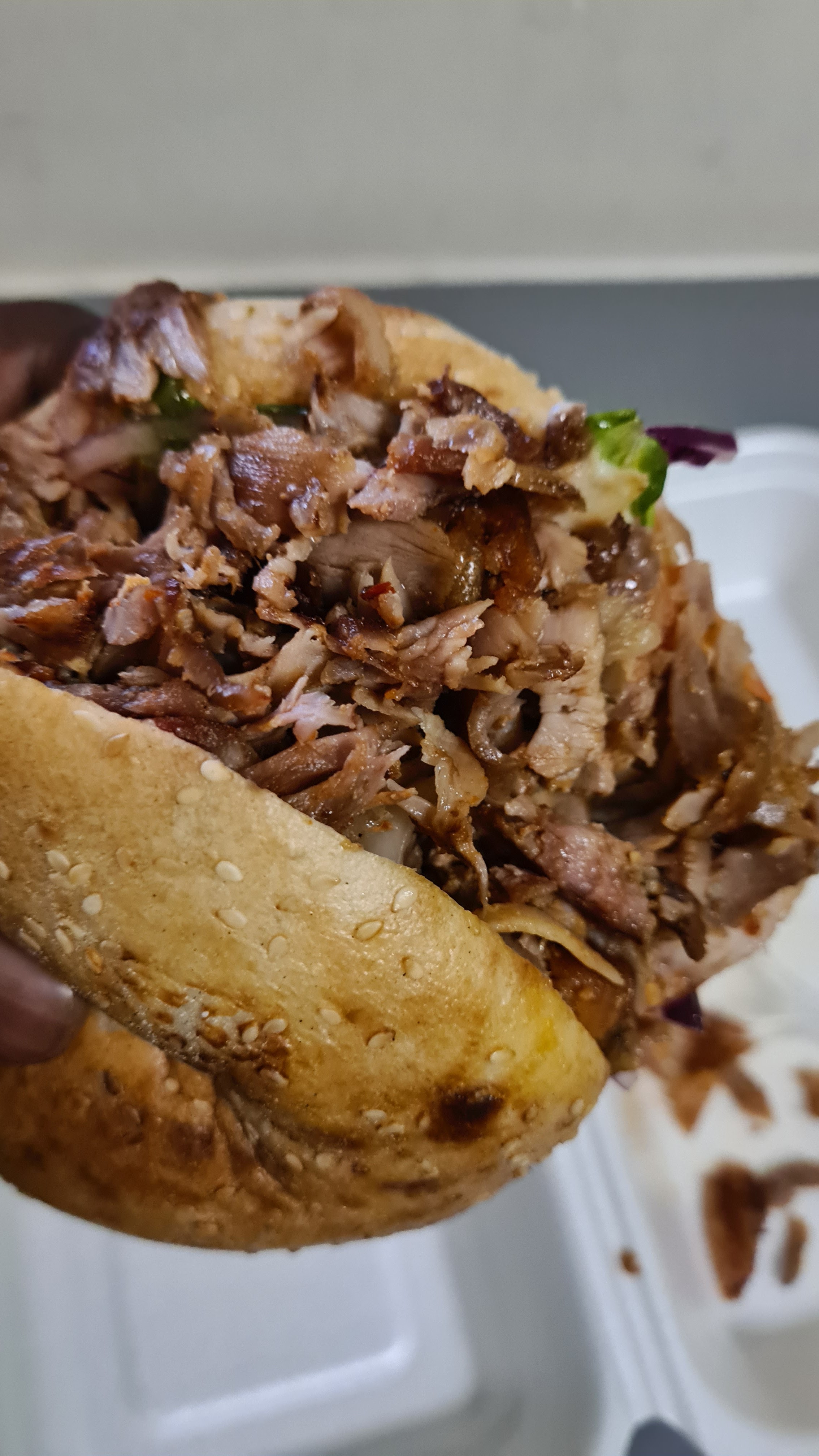 Bon pain légèrement croustillant mais pas sec. A mes deux dernières visites j'ai été bien servi en viande. Édit : trop bon