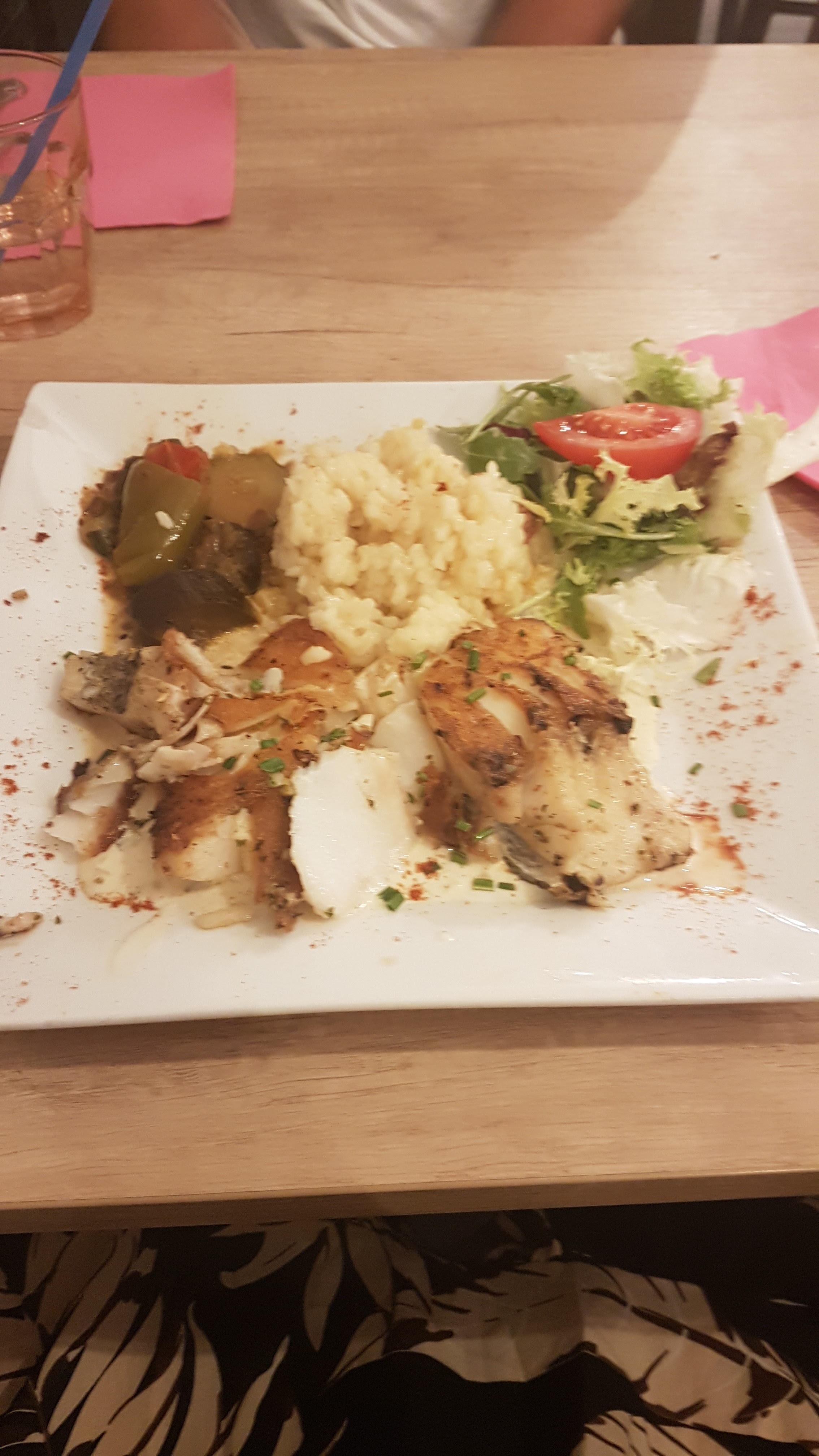 Poisson loup trop cuit, riz de mauvaise qualité que l on peut manger grain par grain, je demande à la serveuse si les frites sont maison - on me répond que oui, alors que ce n'est pas le cas lorsqu'elles arrivent. Ma demande de changement d'accompagnement n'a pas été prise en compte, etc. Aucun intérêt à part la vue sur le port.
