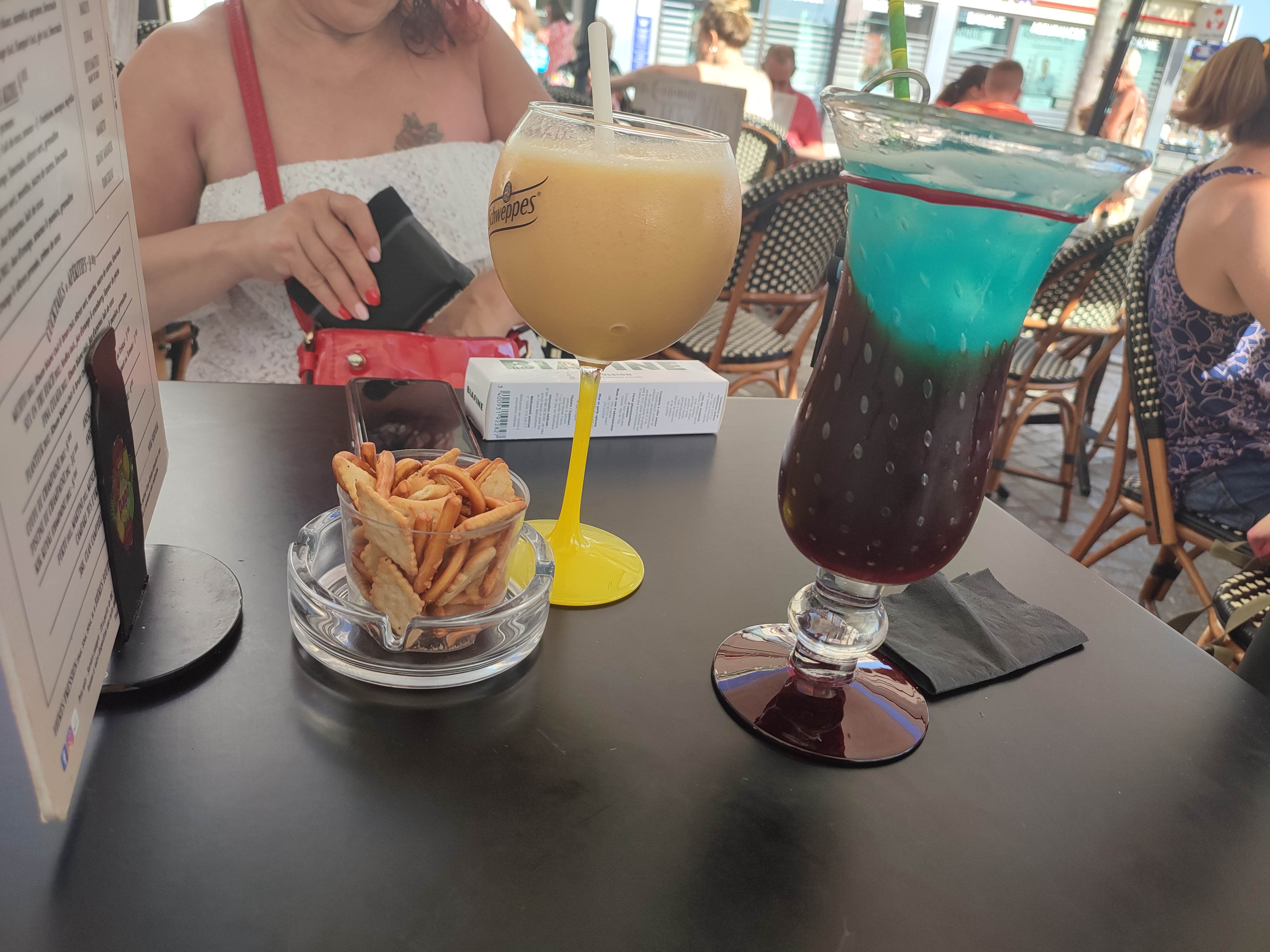 Nous nous sommes arrêté pour boire un coktail et un smoothie.Pour le coktail trop sucré et très fade en accool petit plus un porte-clé offert avec 👍..le smoothie était bon rien a dire .niveau service l'accueil est pas très chaleureux,mais a voir un soir pour un repas pour jugé plus précisément.