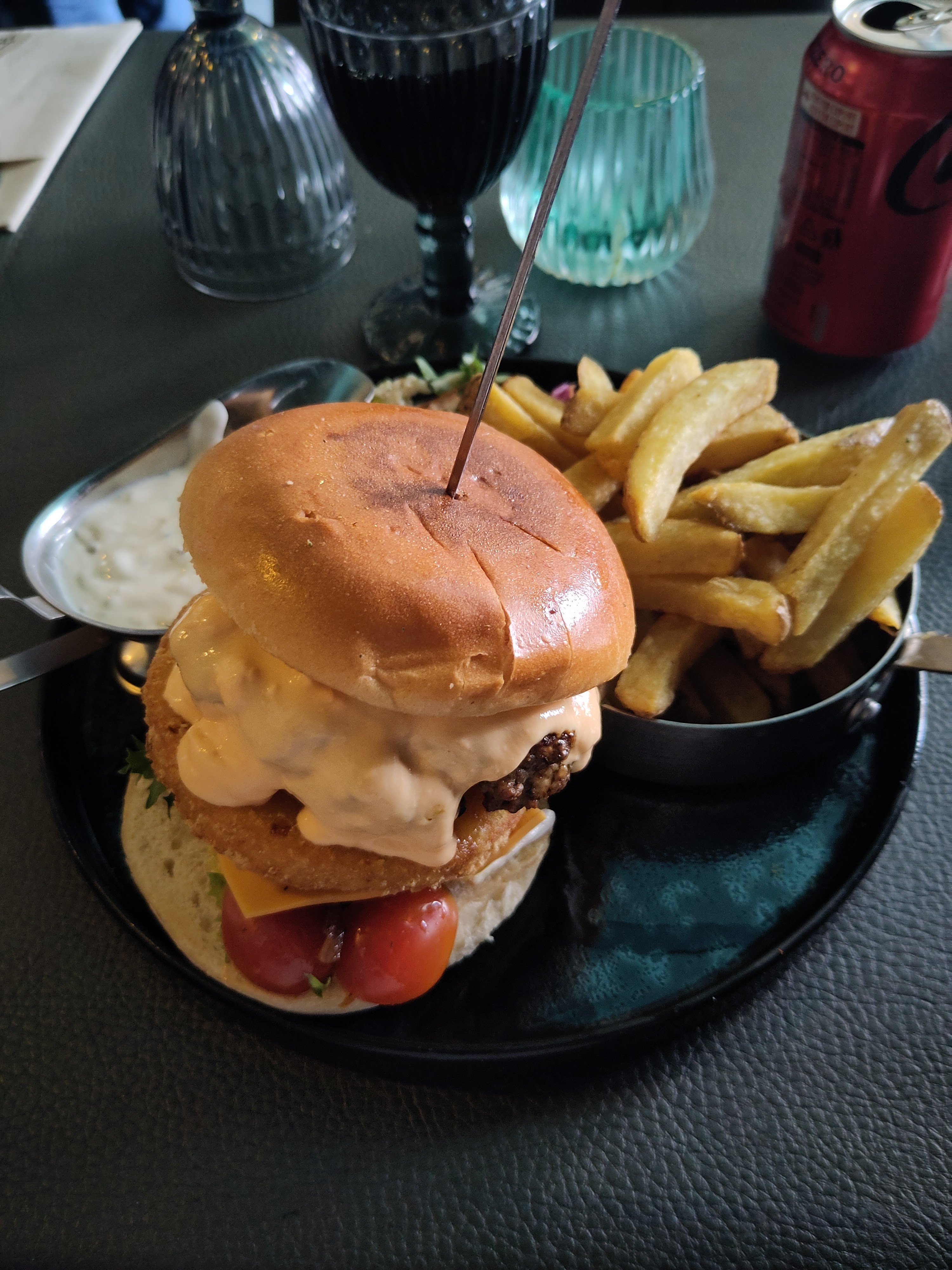 Assiette bien présentée, frites très bonnes. Point à améliorer: accueil plus chaleureux et raccourcir le délais d’attente