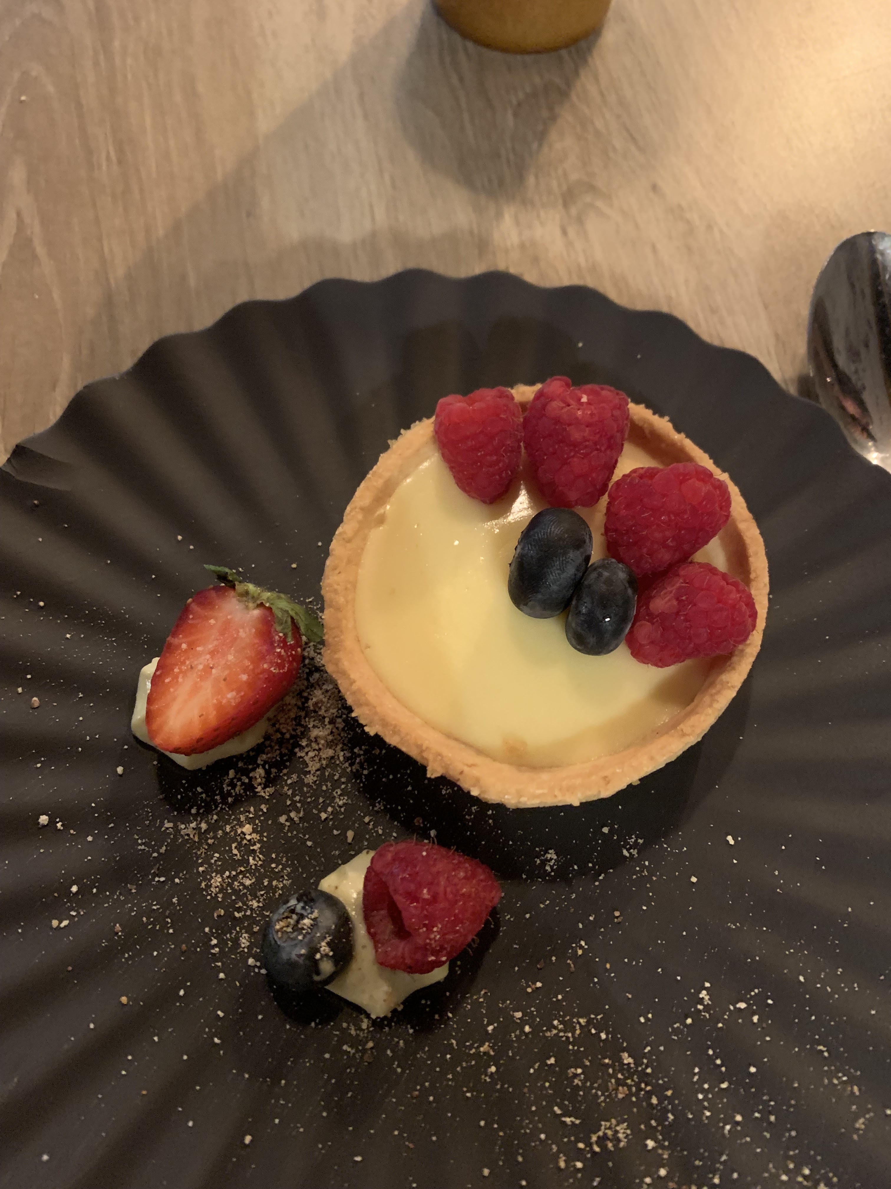 Ne donne pas de mine de face mais un propriétaire passionné. Des desserts maisons, des plats originaux et excellents. 5 plats/ amusés bouches. Je recommande. Vous ne voulez pas vous installer à Lyon ?!