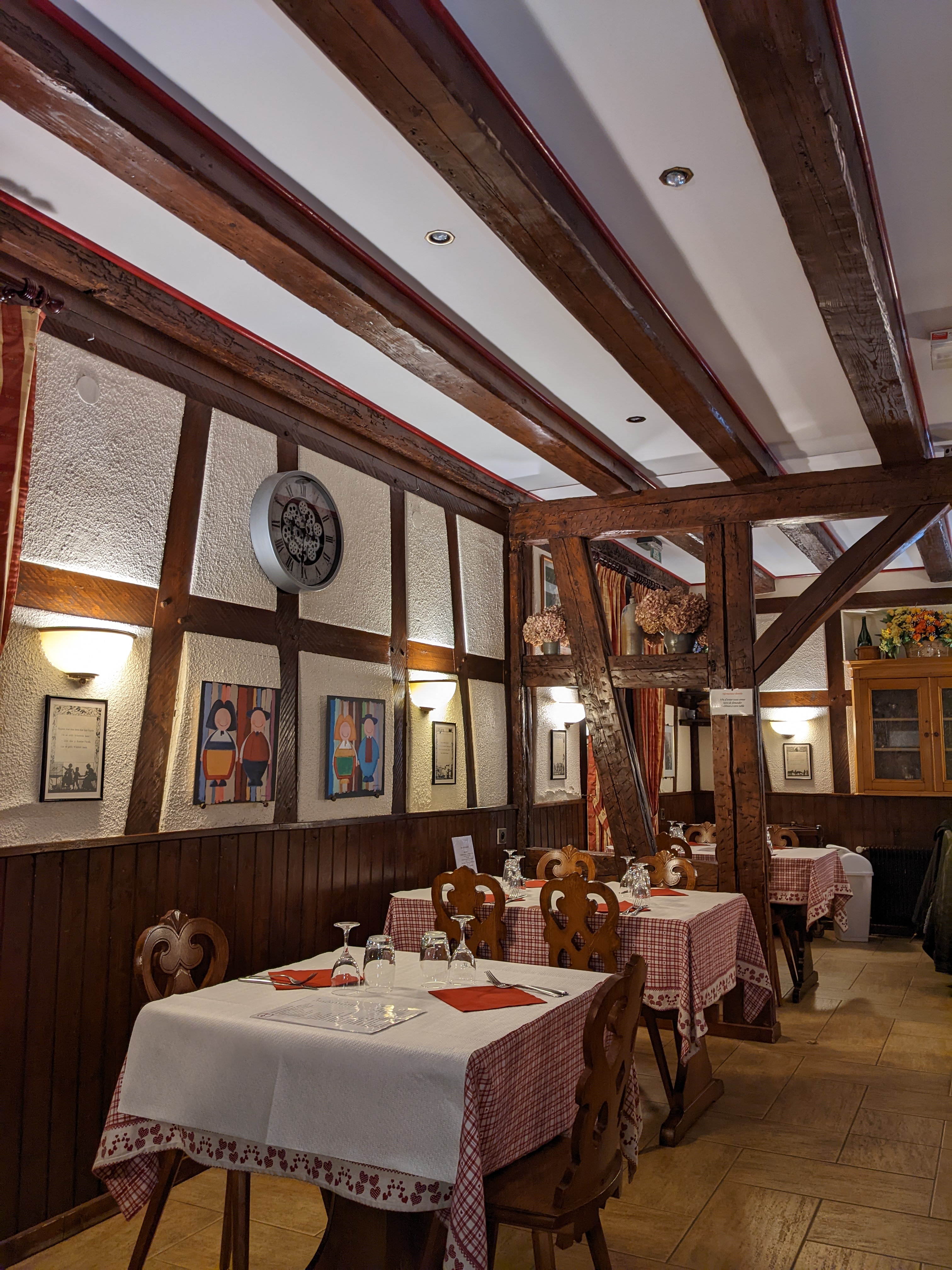 Restaurant idéal pour manger un repas alsacien. Boiseries, kelsch, chaises typiques, tartes flambées,... Tout y est. Et les prix sont corrects