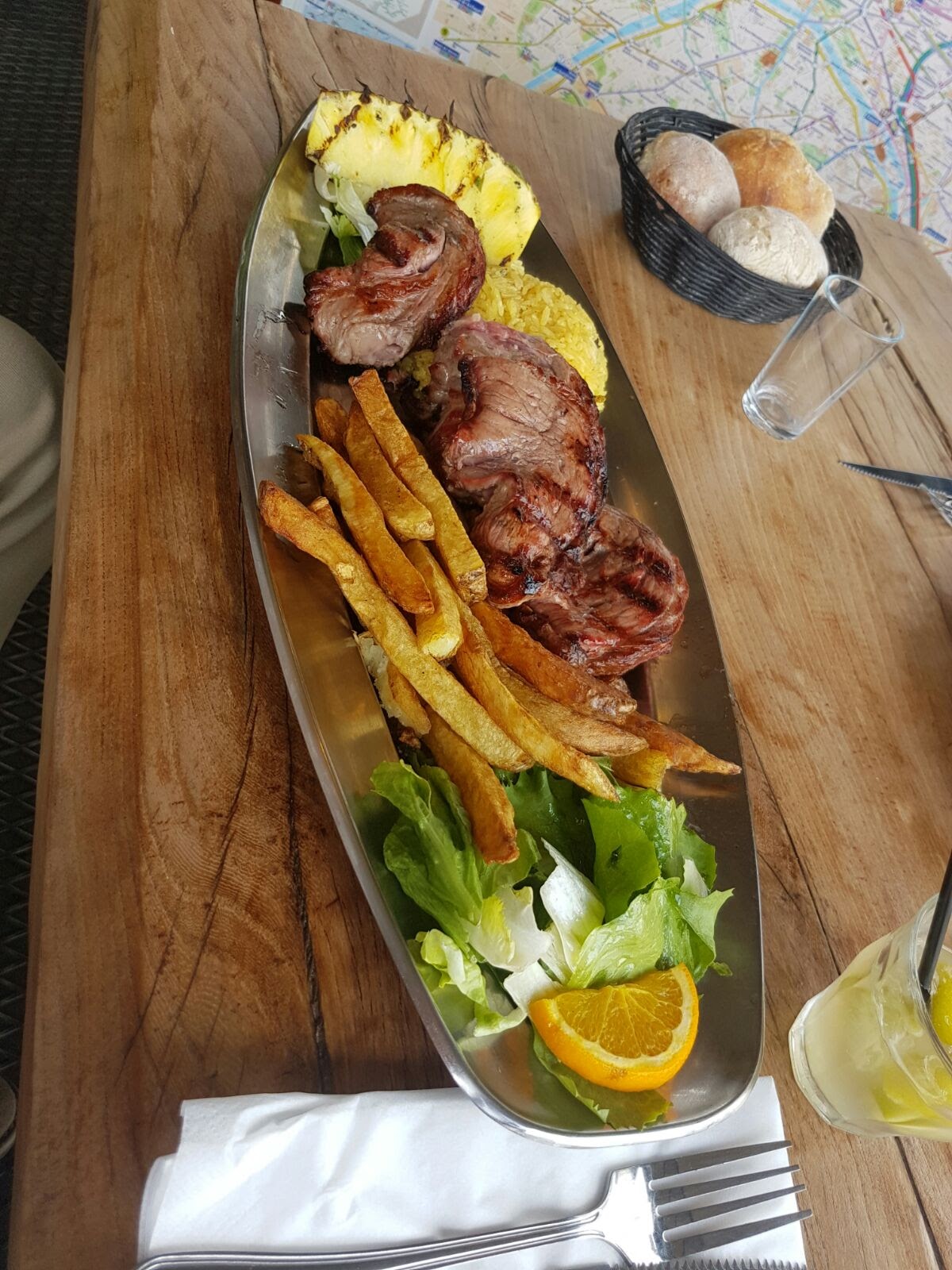 2 ans plus tard je modifie ma notation qui était de 5 étoiles. Grillade pas cuite à point malgré mon insistance. Après une seconde cuisson elle était très bonne. Des bananes plantins ramollies, des bouts de frites en accompagnement. Le responsable nous dit être tributaire du marché lorsqu'on lui fait la remarque sur les accompagnements. Au final service médiocre