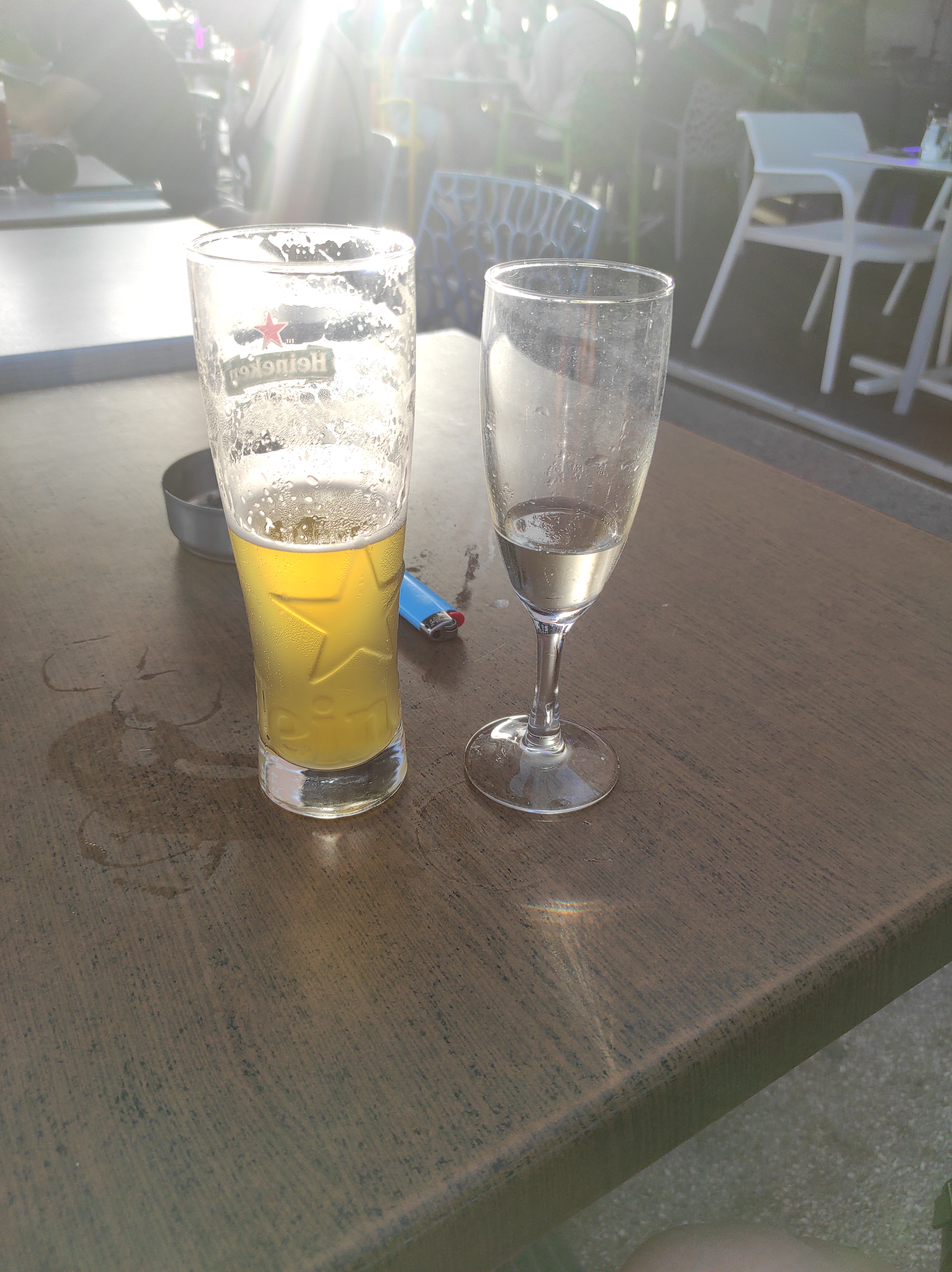 Que dire Nous avons été boire un verre Ambiance de mafia 2 vigile ... Le serveur tatoué jusqu'au visage et a côté de ces pompes Ils sont donne le noms des cocktails sans explications, sans cartes et sans tarif On as changé un cocktail dans la minutes (un alcool que la personne n'aimais pas y était) Oui , on aurais pas fais cette erreur si ont avais eu la carte !! Il nous as servis un morito au lien d'un Virgin morito Et est revenu 3 fois pour la glace de mon fils pour dire qu'au final le parfum ni était pas Et le bouquet final Au moment de payer L'autre serveur un petit barbu grande gueule au gros mollet dis à la caissière Oui , tu vois ! C'est la table un peut compliqué !!! Pas de notre faute si ton Gangstar de serveur et a côté de la plaque Tant pis On voulais un endroit sympas pour ce détendre le soir ...... On ira ailleurs