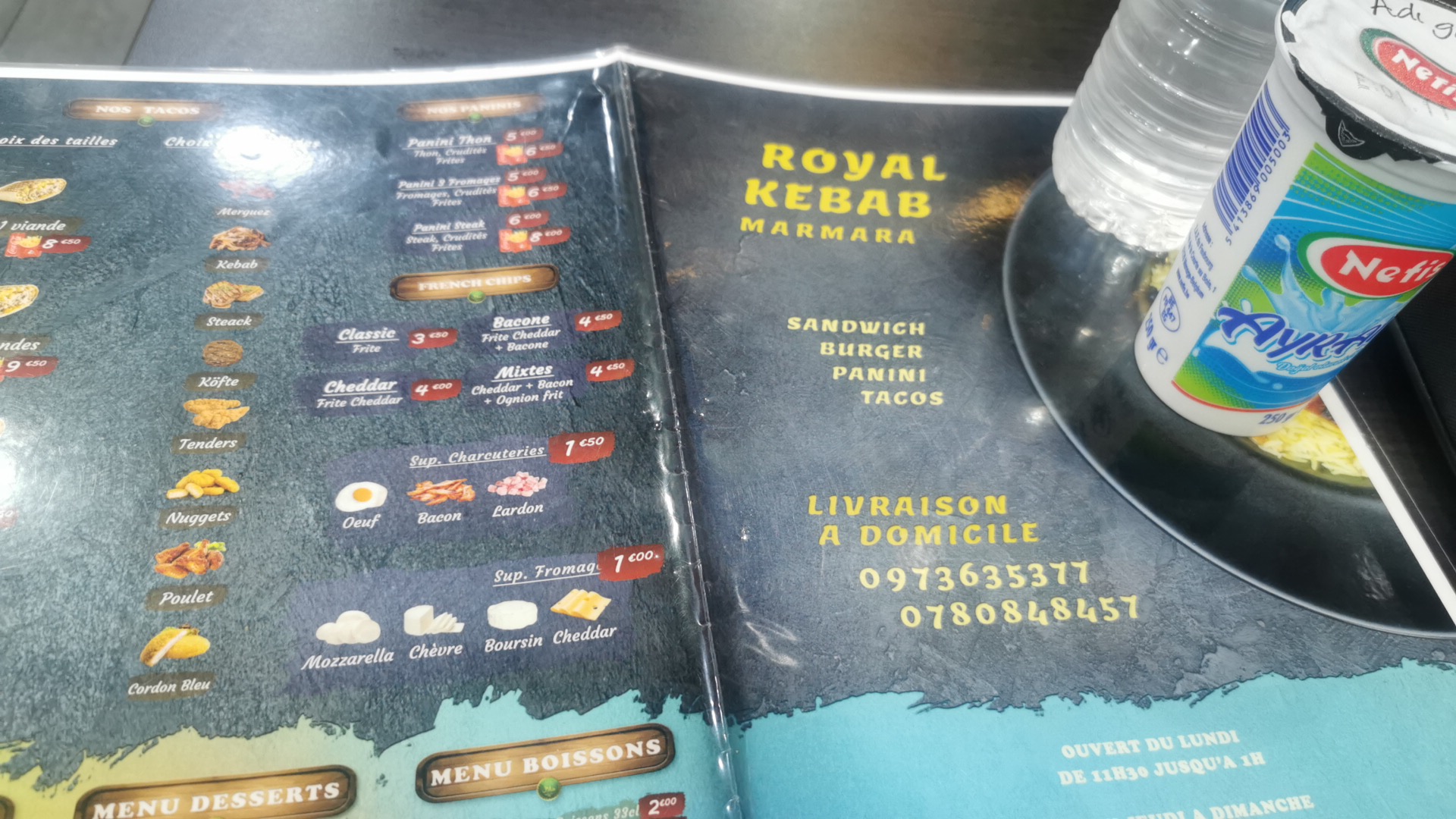 Hygiène même pas douteuse…elle n’est pas présente et il s’en cache pas (on ne se lave jamais les mains, les sachets de frites ouverts à même le sol plein de farine, de nourriture et j’en passe). Tacos tiède/froid (il l’a mis 4,5 secondes à réchauffer pour faire apparaître les marques donc je vous laisse imaginer la propreté de l’appareil à réchauffer). Tacos certe froid mais en plus vraiment pas généreux (une mini mini dose de sauce, un pincer légère de frites, le poulet qui est rester plus de 20 minutes sur le côté donc même en le mettant 5 secondes sous leur truc pas chaud). Kebab ça allais encore mais bon sans hygiène ça donne pas envie de le manger. 13 euros pour un petit tacos, un petit kebab et une indigestion. Je suis sur que la propreté est bonne à l’ouverture mais un gros laisser aller en fin de soirée c’est dommage…l’étoile va uniquement pour l’accueil du jeune homme qui sur ce point je n’ai pas absolument rien à redire.