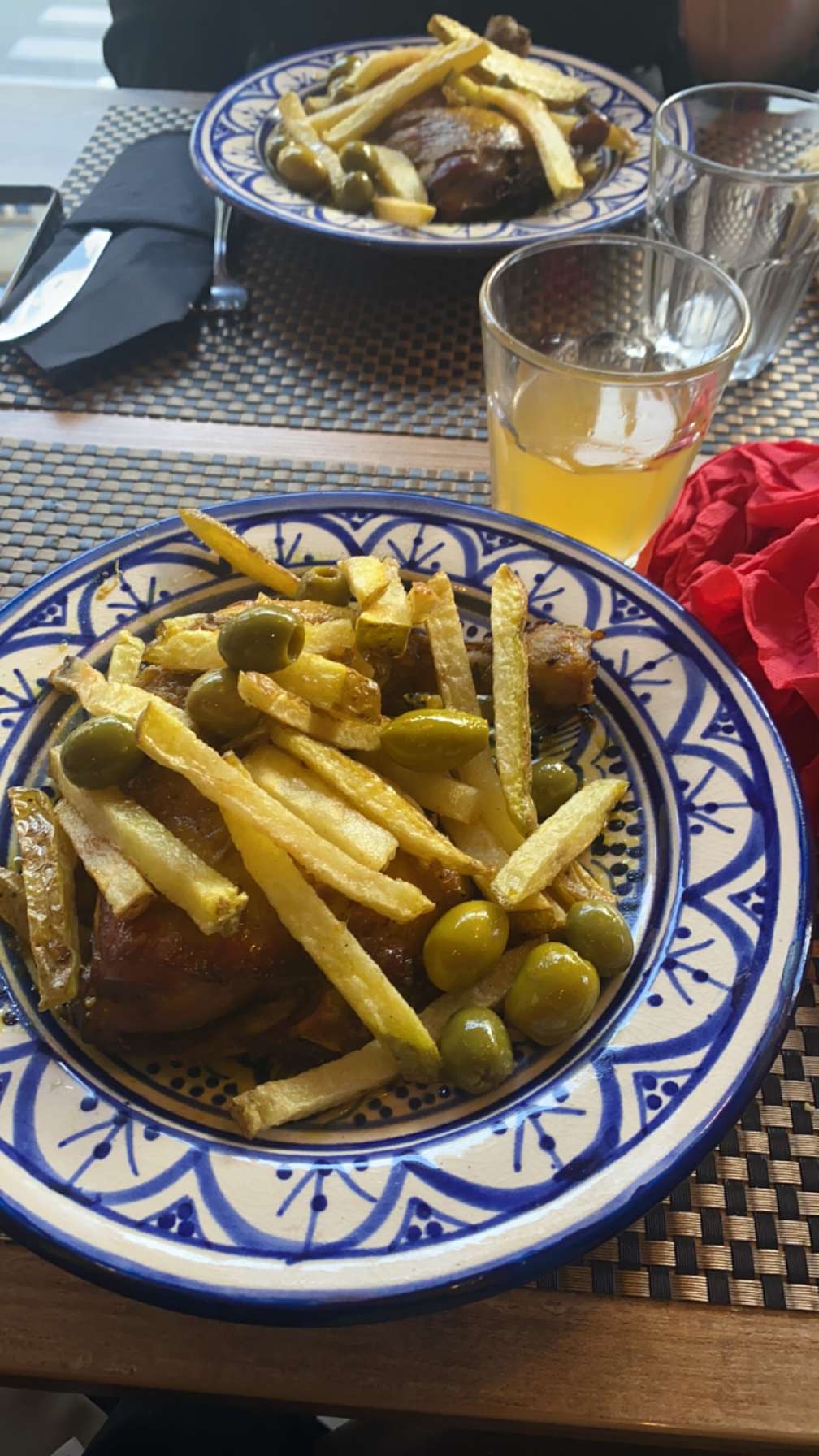 Cuisine Zéro tajine avec frites et 3 olives,