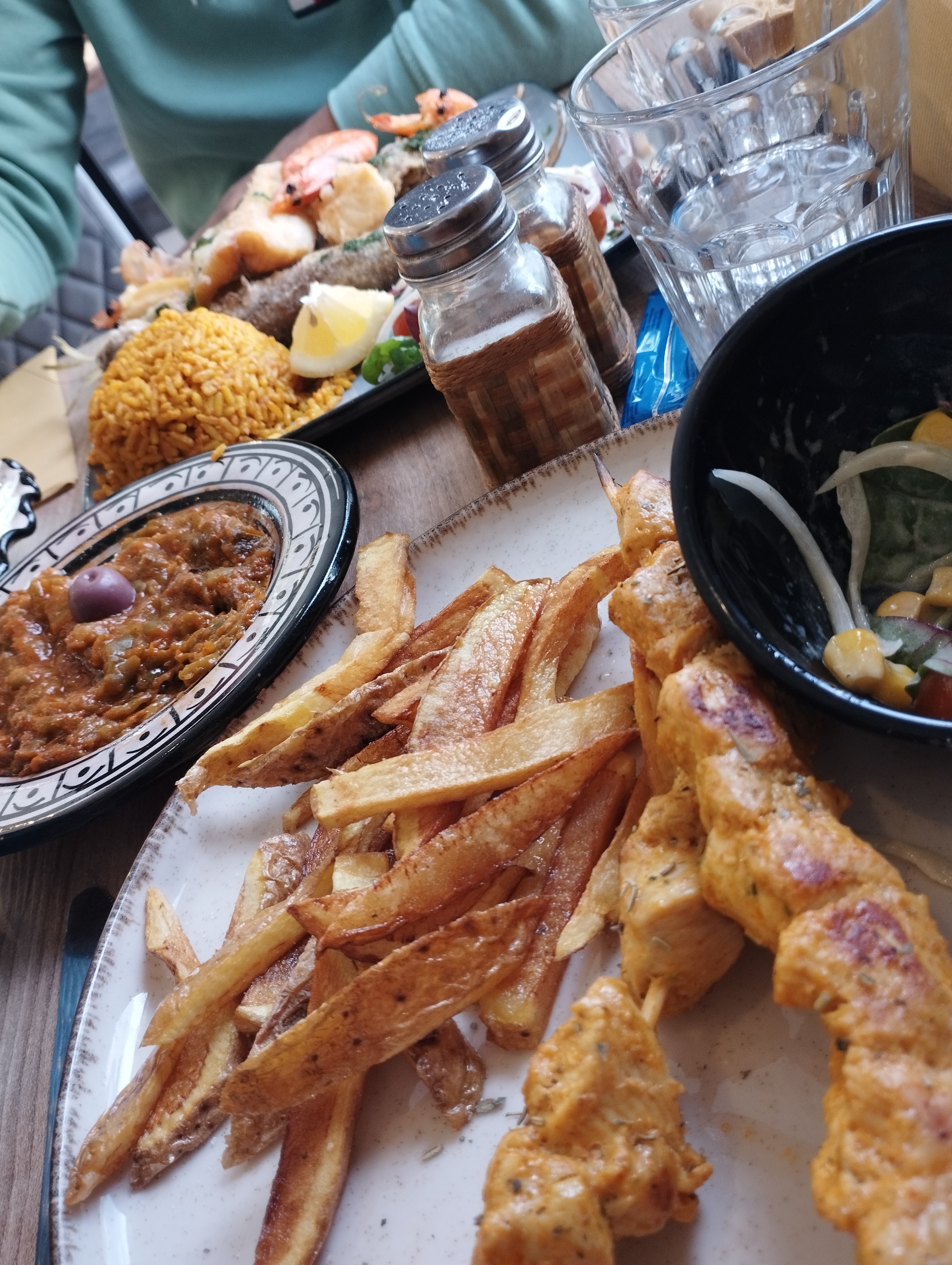 Restaurant convivial, accueil très chaleureux, la salle propre, toilette nickel, question repas très bon surtout le mixte poisson un régal, la soupe marocaine un délice mon épouse à kiffé, les serveurs au top ont y retournera ça s’est sûr.