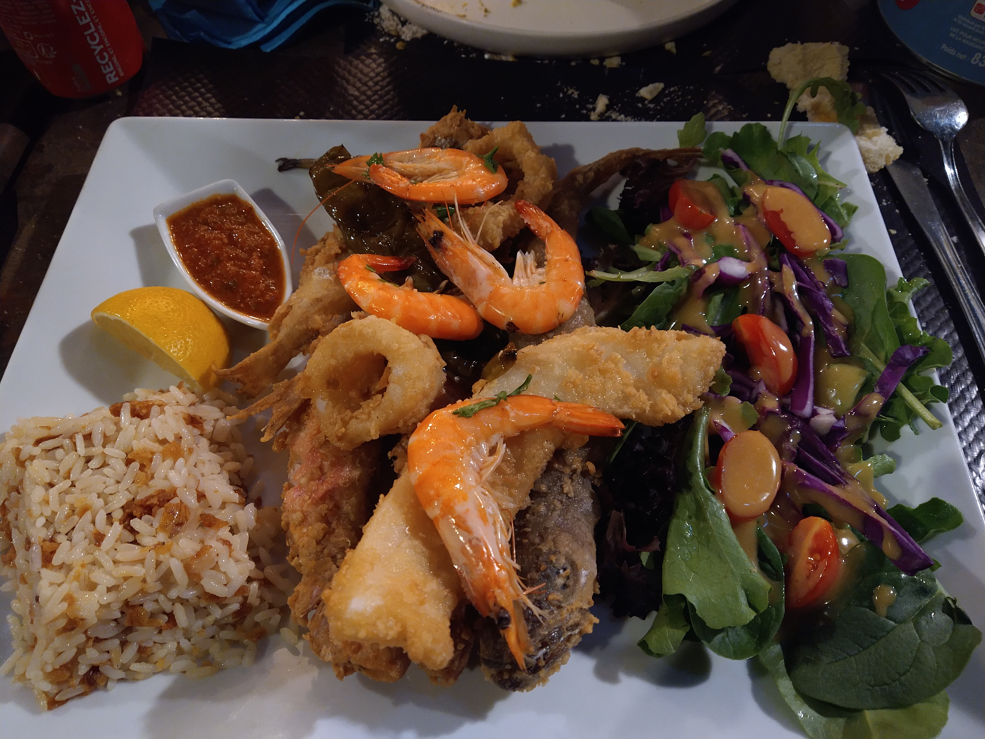 Première fois dans ce restaurant ,et ce fut une belle découverte 😍! L'assiette de poisson est très variée et surtout le poisson est frais , niveau acceuil et service l'équipe est chaleureuse et souriante , et les prix sont vraiment raisonnable !