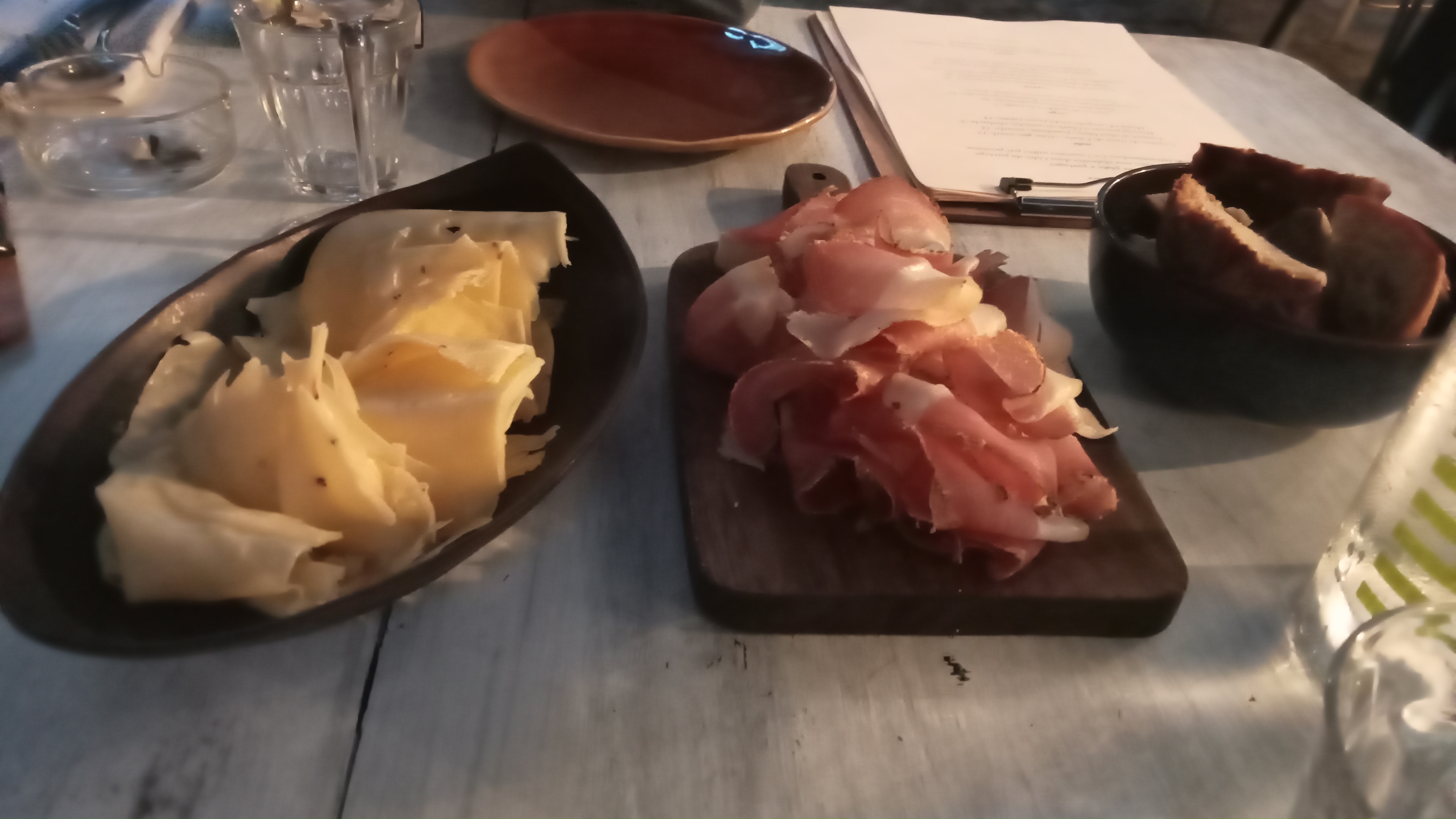 Un petit restaurant caché, avec un personnel adorable, de la bonne nourriture et du vin délicieux. Ils n'ont que 10 tables. Belle ambiance. Petite carte avec assiettes à partager. Nous avons eu un carpaccio de poisson, des coquilles à la mousse de pomme de terre (nous pensons), du jambon mûri 24 mois, du pâté en croût et un joli dessert avec du gâteau, de la pomme, noyé dans l'alcool. Des saveurs surprenantes et des saveurs familières