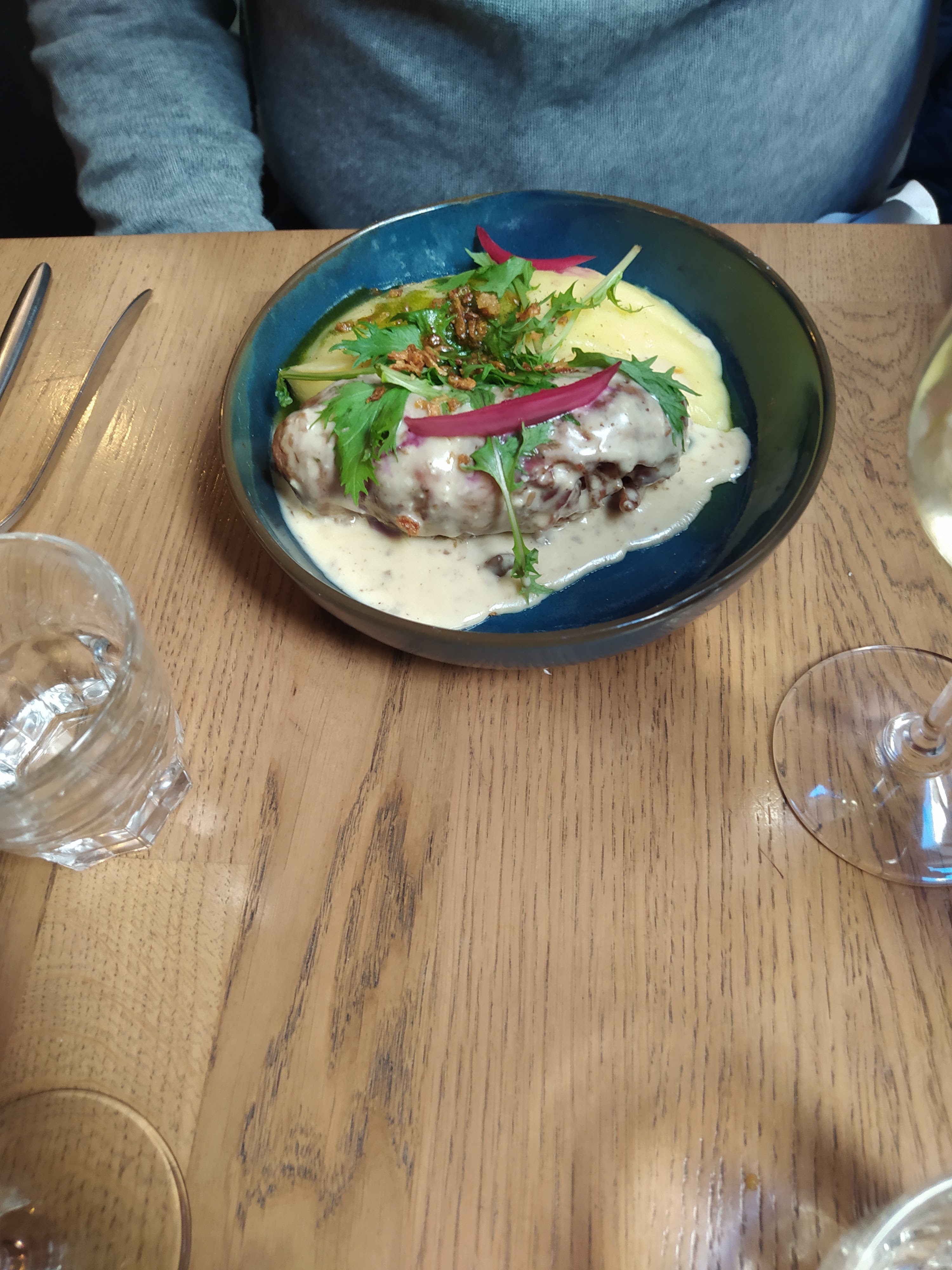 Si bon. Repas parfait. Et le service était attentionné et sympathique. J'ai suivi un chat et j'ai trouvé le restaurant puis le chat s'est assis avec nous quelques minutes après le dîner