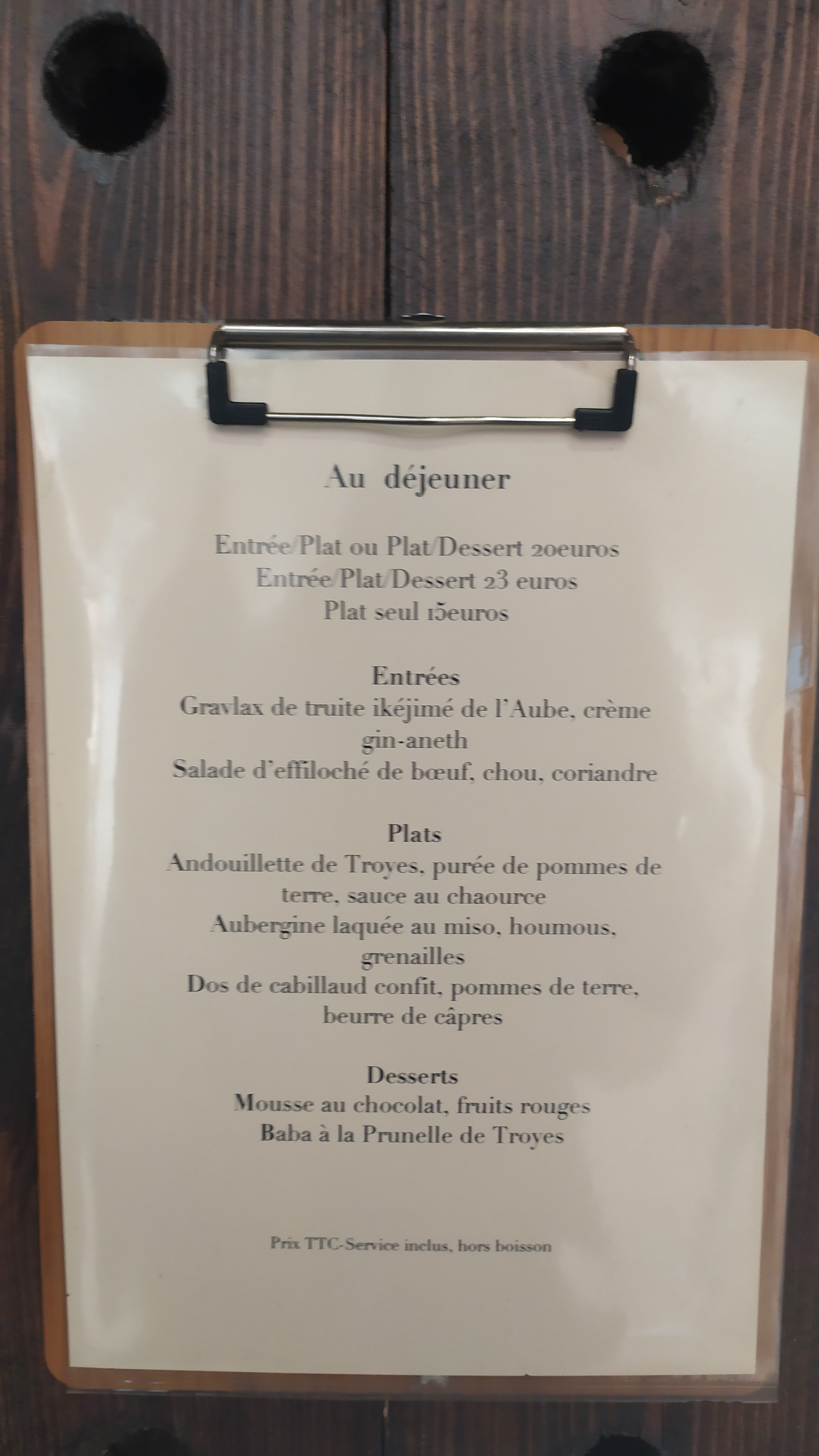 Belle découverte par hasard d'une journée passée à Troyes. Nous avons aimé le menu du déjeuner avec peu de choix mais d'excellents produits frais, locaux et très bien cuisinés. Sans oublier l'ambiance conviviale, le personnel est très aimable et professionnel. Je recommande vivement, surtout que la carte du déjeuner change toute les semaines!