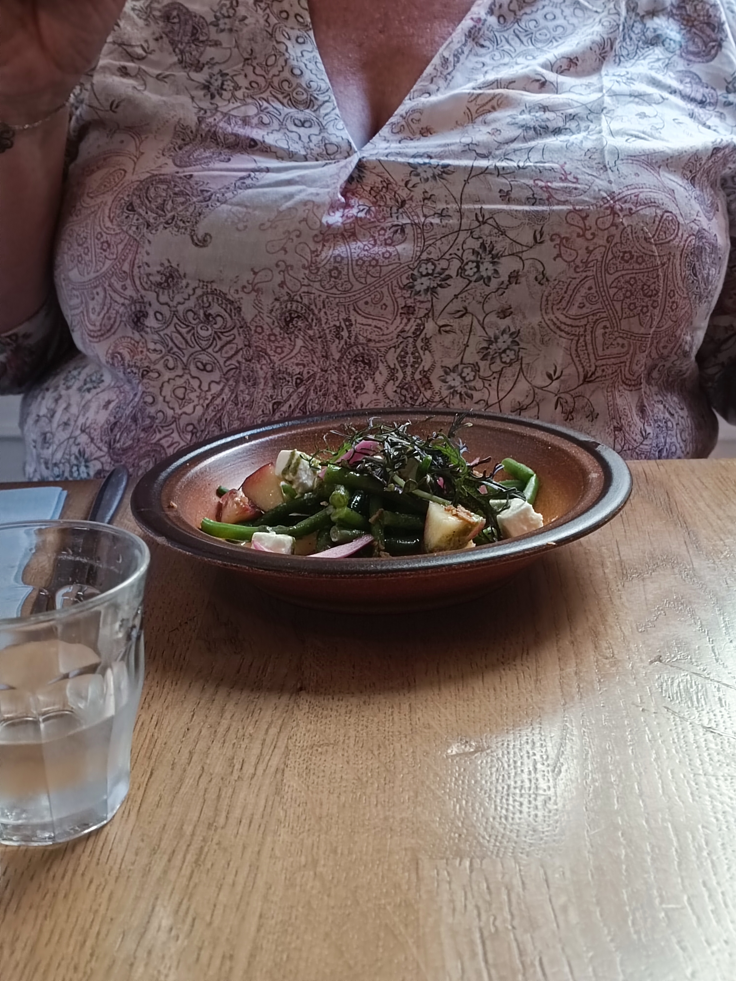 Un petit bijou de petit restaurant ! Nous nous sommes assis dans la cour ensoleillée pour un déjeuner vraiment détendu et extrêmement agréable. Le service était décontracté mais attentionné - rien n'était trop leur demander. Menu court avec beaucoup de flexibilité pour les végétariens et les mangeurs sains. Bon rapport qualité/prix, bonne cuisine sans prétention. Le pain était fait maison, l'eau apportée à table sans rien demander et l'atmosphère était authentique. Beau!