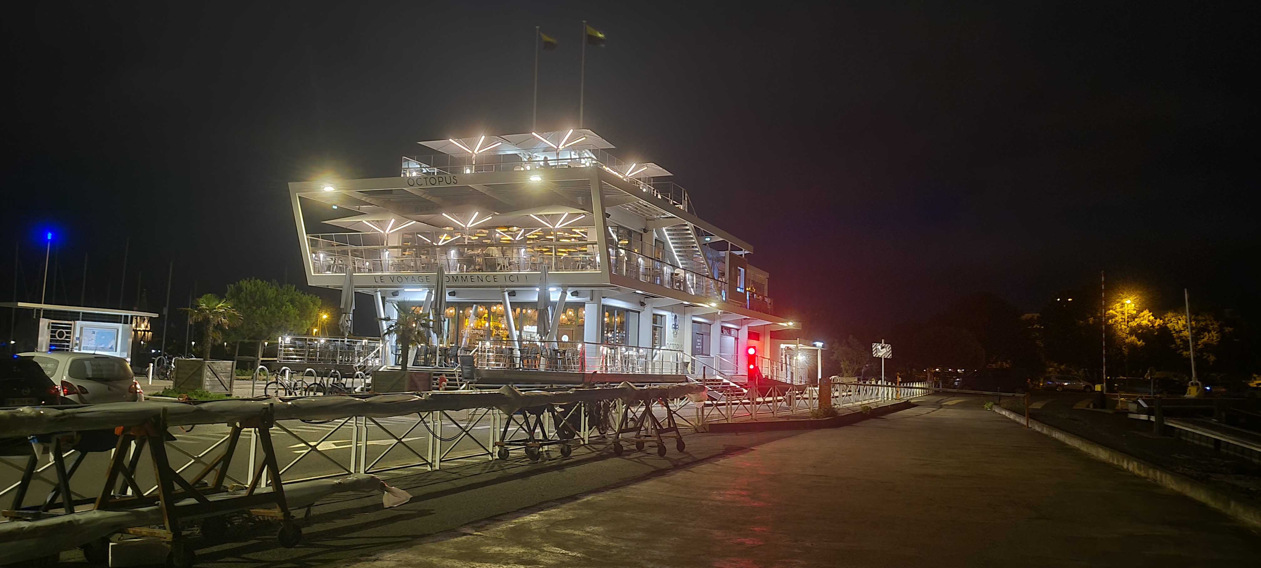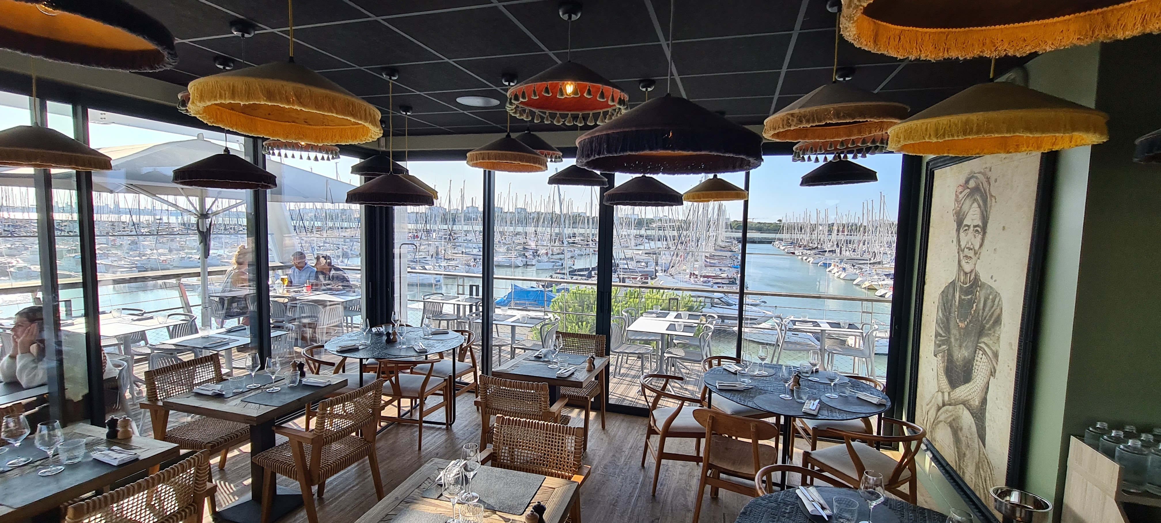 Vous aimez les bateaux la mer voilà le restaurant où il faut aller....comme un navire de croisière sur 2 étages et un roof dîner prendre un apéro où boire un verre avec vue sur ce port incroyable....d'abord le service tout le personnels est au top serviables agréable et pro....la cuisine terre ... mer ... excellente et de belles agapes pour l'apéro bref l'endroit branché des marins et autre Rochellais..... Je recommande vivement....