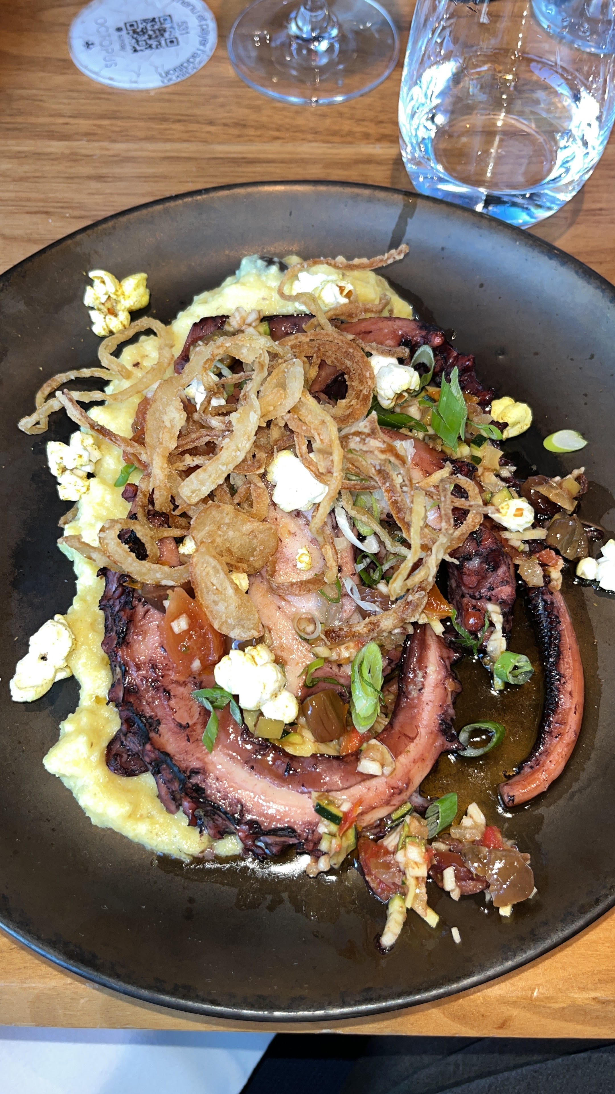 Courrez-y si vous êtes fan des saucisses basque = merguez améliorée. 5 saucisses pour deux personnes coupées en morceaux. accompagnée de 2 IPA. Le tout pour 32euros par personne. La IPA nous a fait digérer cette arnaque😁 Rien à dire sur le service. Le cuisto aime quand c'est bien cuit? Et peut-être souffrent ils de pénuries? Nous étions 10 à table. Belle recette! Octopus une belle salade de poulpe ?
