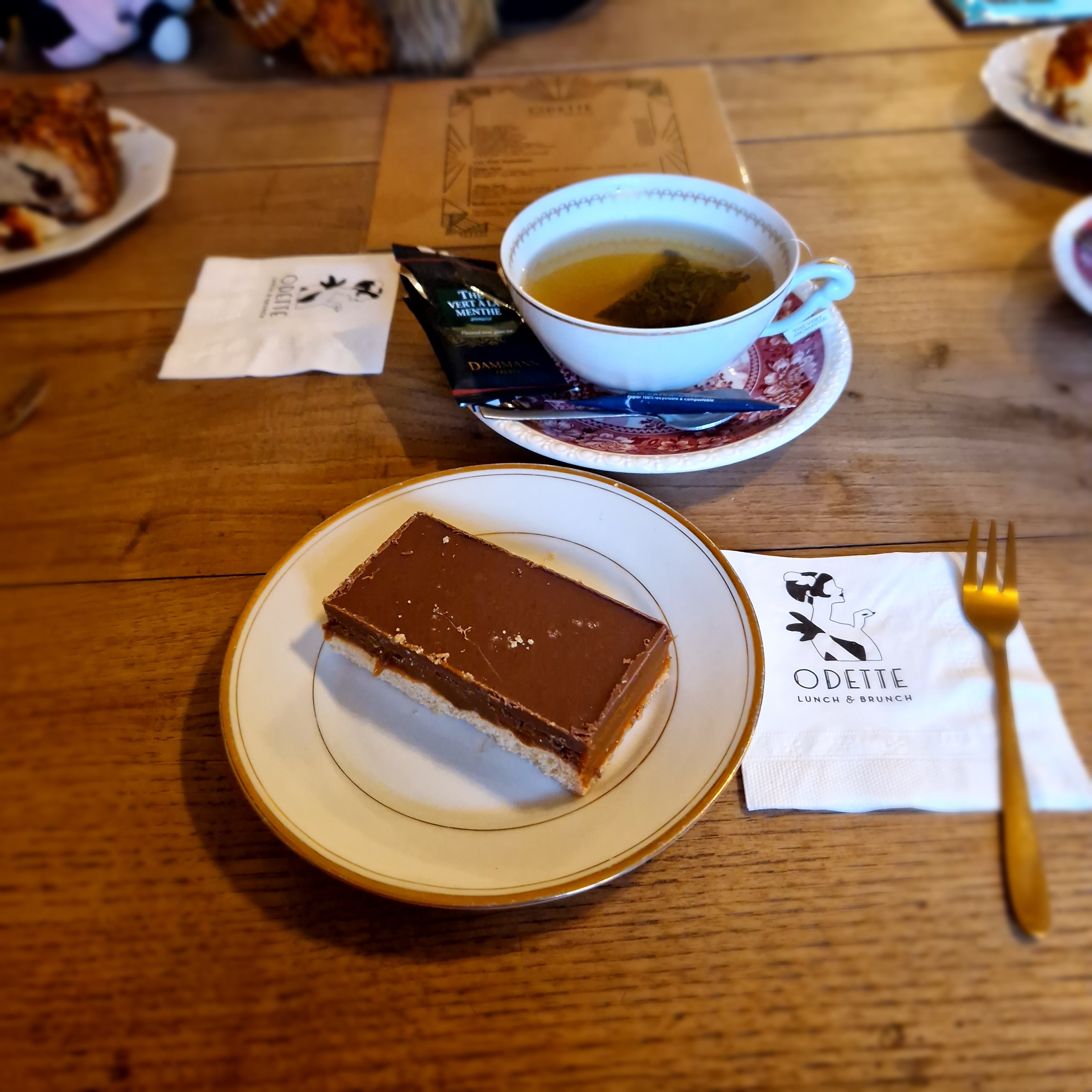 Nous avons découvert Odette par hasard jeudi après-midi. Nous avons été merveilleusement bien accueillis et installés dans cet endroit incroyable. Déco chaleureuse saupoudrée d’une English touch. Nous avons dégusté un très bon chocolat chaud ainsi que des pâtisseries à tomber !