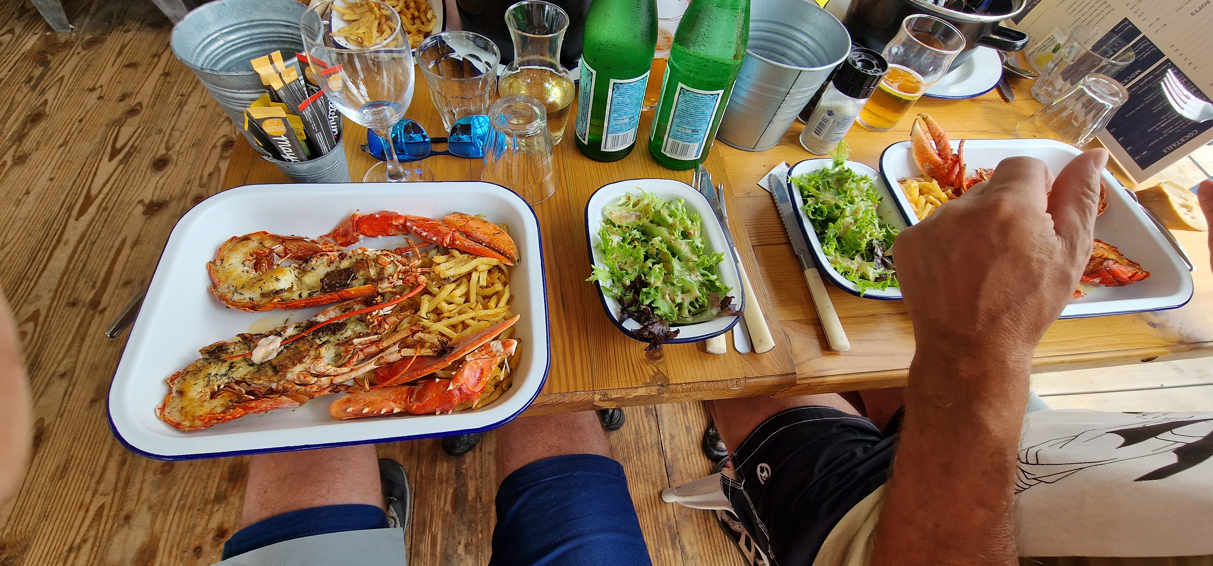 Un déjeuner gourmand sur la plage, à base de homard. Miam. Des bons produits, service sympathique de Clint et son humour pince sans rire. On reviendra !