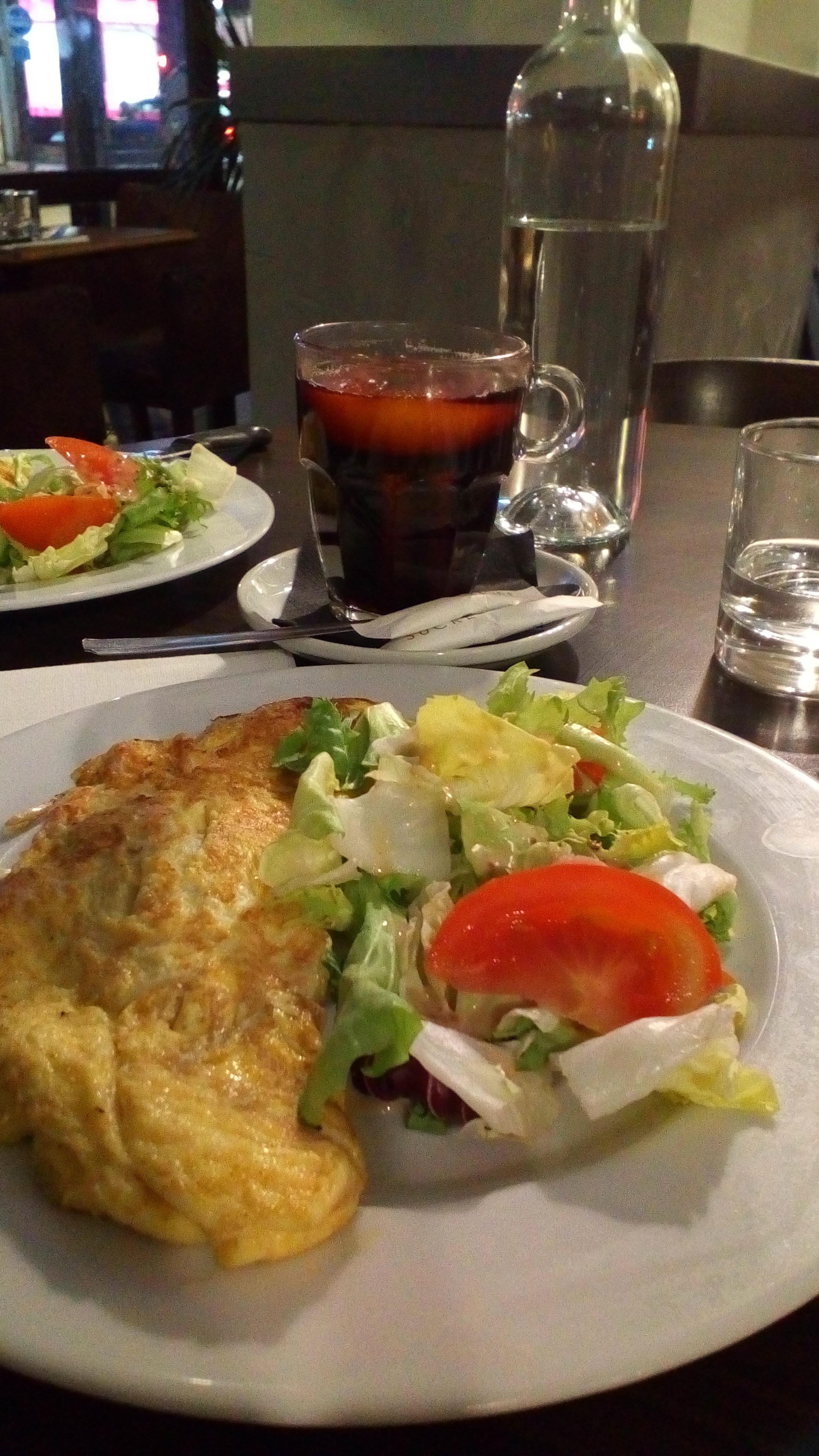 Chaque fois que nous allons à Paris, nous mangeons de l'omelette au fromage et buvons du vin chaud. Cet endroit est très accueillant, la serveuse est très attentionnée, et l'omelette au fromage et le vin chaud sont délicieux ! Je recommande! Aujourd'hui, j'ai mangé un délicieux risotto au saumon.