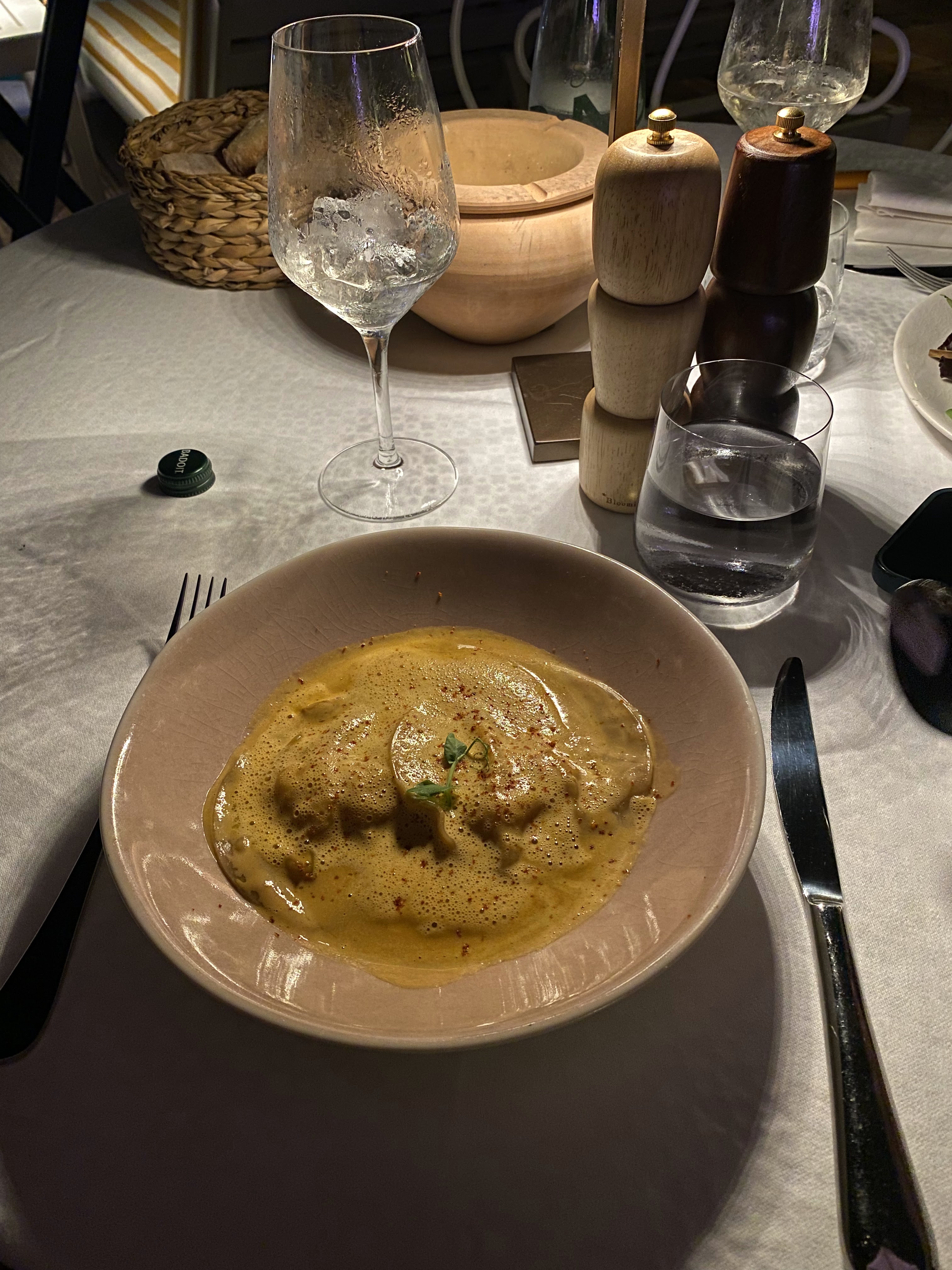 Cadre idyllique au bord de la piscine, ambiance calme et romantique, service aux petits soins. Les ravioles aux langoustines... un délice !