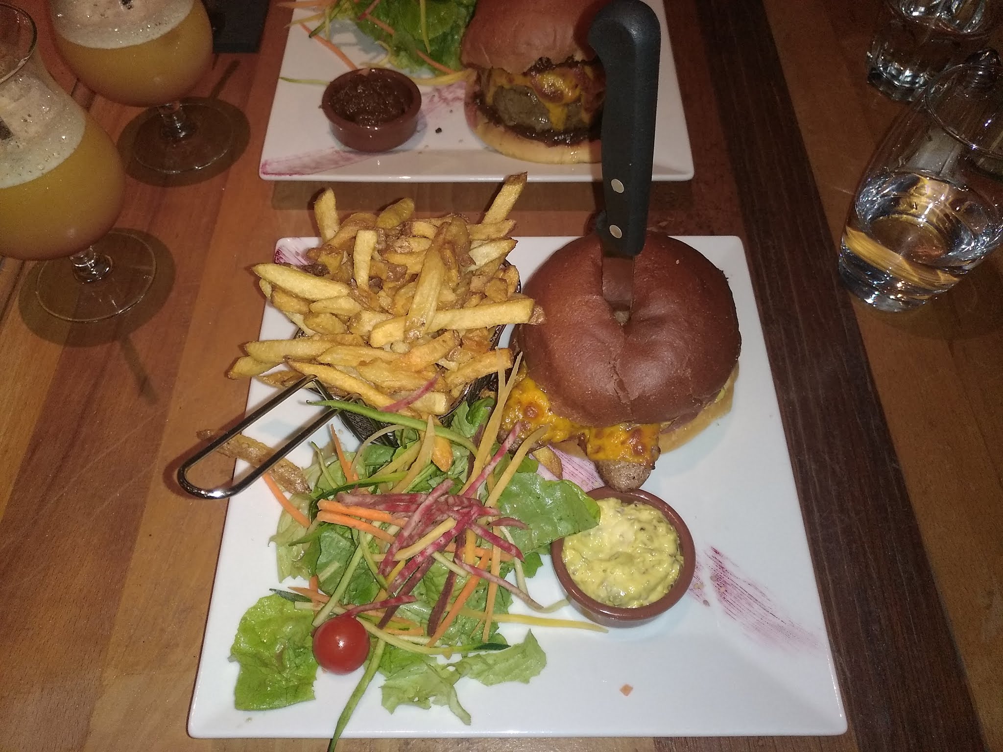 Comment dire... ben j’ai vomi 6 fois quoi, rien que d’y repenser me donne la nausée. Je suppose que c’est une intoxication alimentaire mais je peut pas en être sûr à 100%. Mais si on oublie ça, on peut aussi parler du fait que j’ai réservé et qu’il m’ont fait attendre 1h pour avoir une table et pas manger sur un tonneau, finalement en arrivant pas de table disponible, j’ai pu en avoir une et m’installer qu’au bout de 10minutes. Ensuite ils ont mis 15min de plus à prendre notre commande, 30 pour nous servir l’apéro et une heure pour les burgers, bref très long. Et on était que deux. Après c’était pas si mauvais m’enfin l’intoxication alimentaire me refroidit pas mal. Ha oui et les kir au vin blanc n’étaient vraiment pas bons, je ne pensais pas que c’était possible de rater un kir.