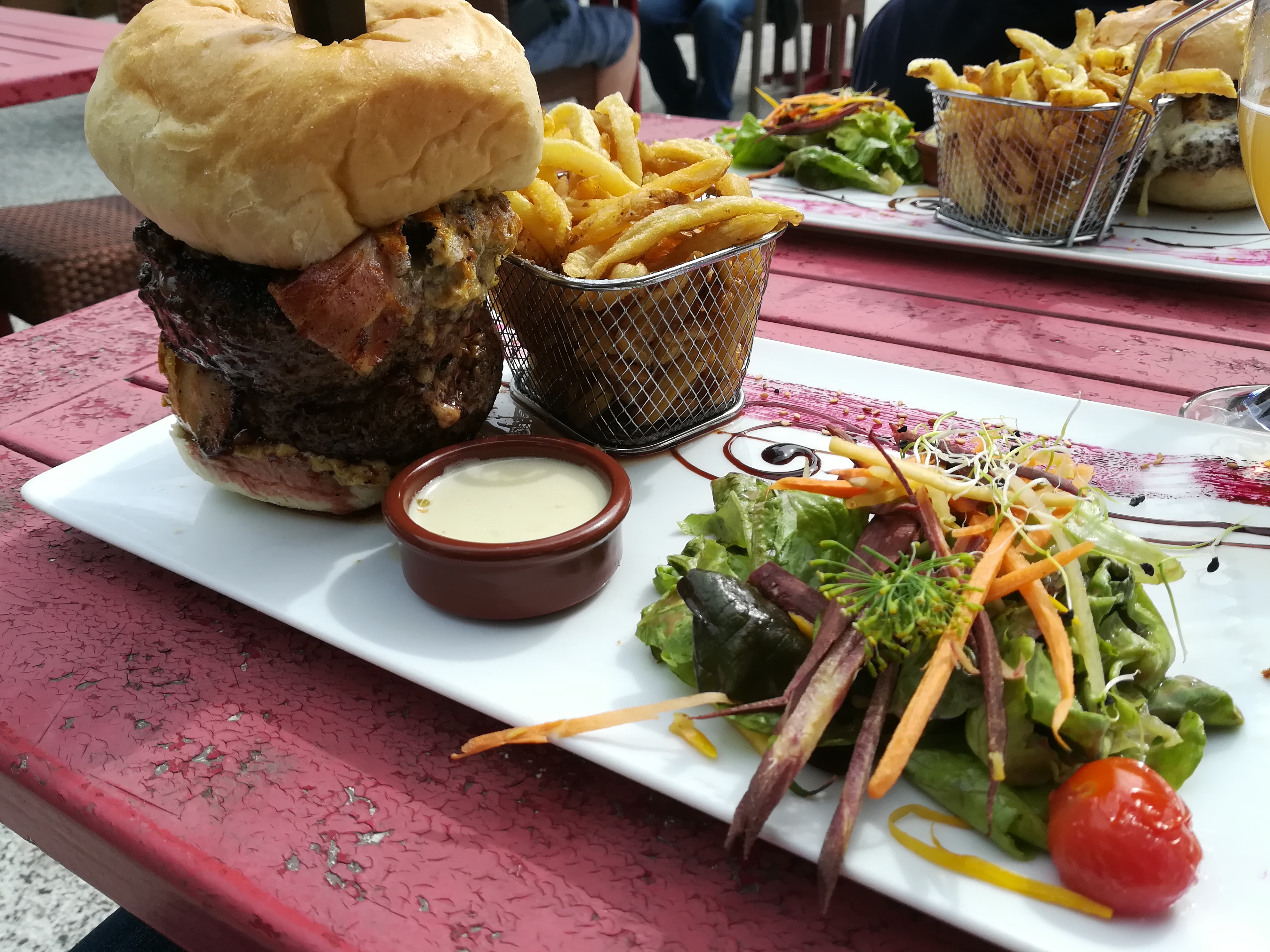Ce bar-restaurant est un bonne trouvaille, bon alors soyons clair, ce n'est pas un restaurant, mais plus une brasserie cela dit, pour une brasserie les burger sont géniaux ! La déco n'est pas belle, les tables sont un peu collantes, mais bon ça correspond au lieu. Le repas était très bien et surtout les assiettes sont très copieuse ! L’idéal c'est de manger en terrasse quand il fait beau ! Je recommande.