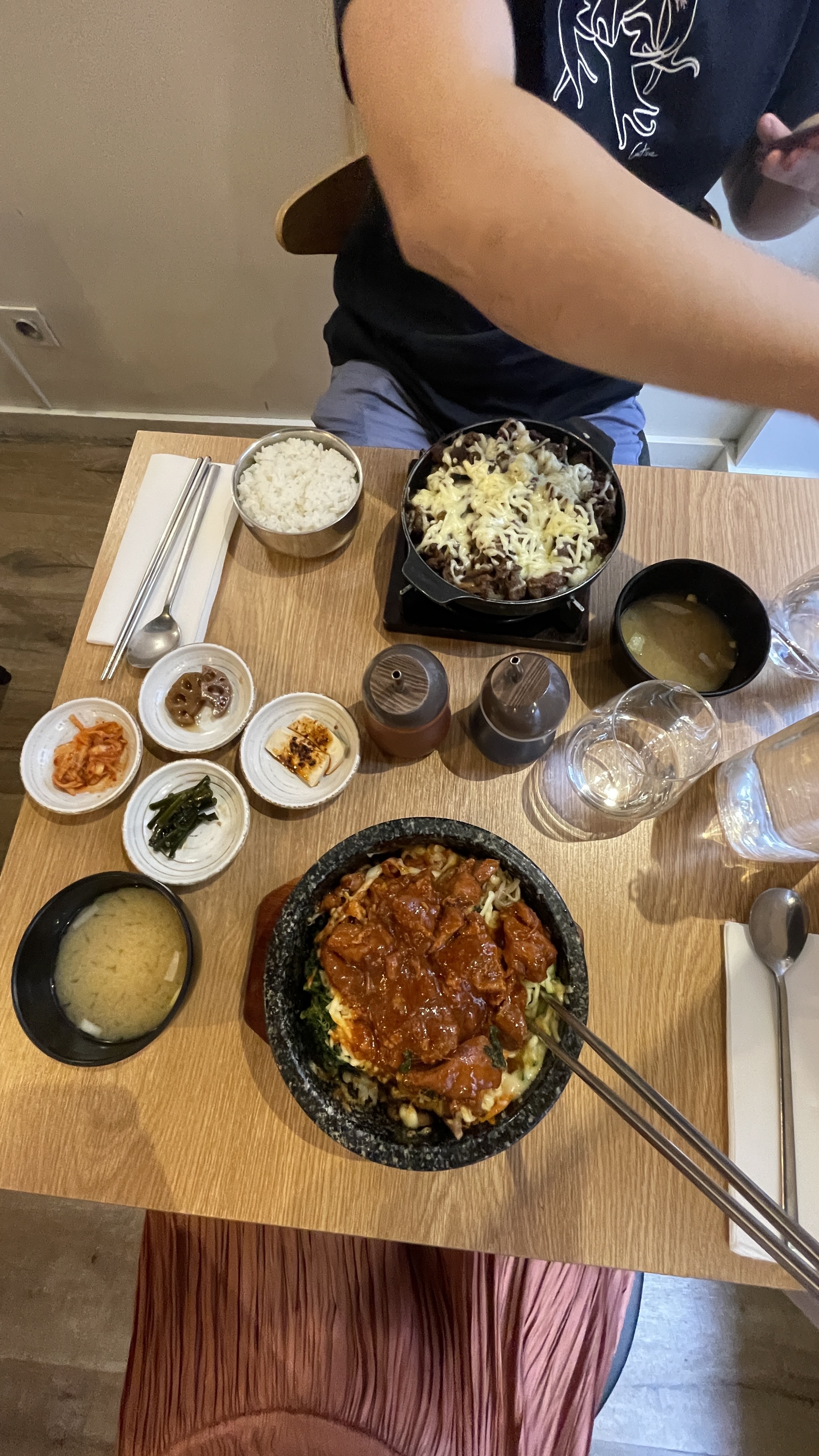 Les plats sont trop sucré/ salé nous avons sans cesse soif après notre repas, prix trop élevé pour la qualité , quantité généreuse mais ça ne fait pas tout.. mitigé sur ce resto coréen.