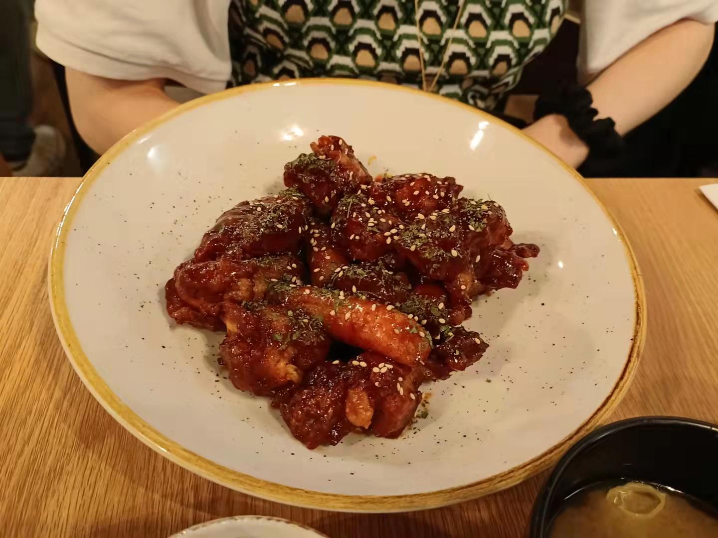 Très bon restaurant coréen surtout le poulet frit sauce piquante ! réservation en avance car beaucoup de monde . Les banchan sont excellent notamment le kimchi . Bonne adresse !