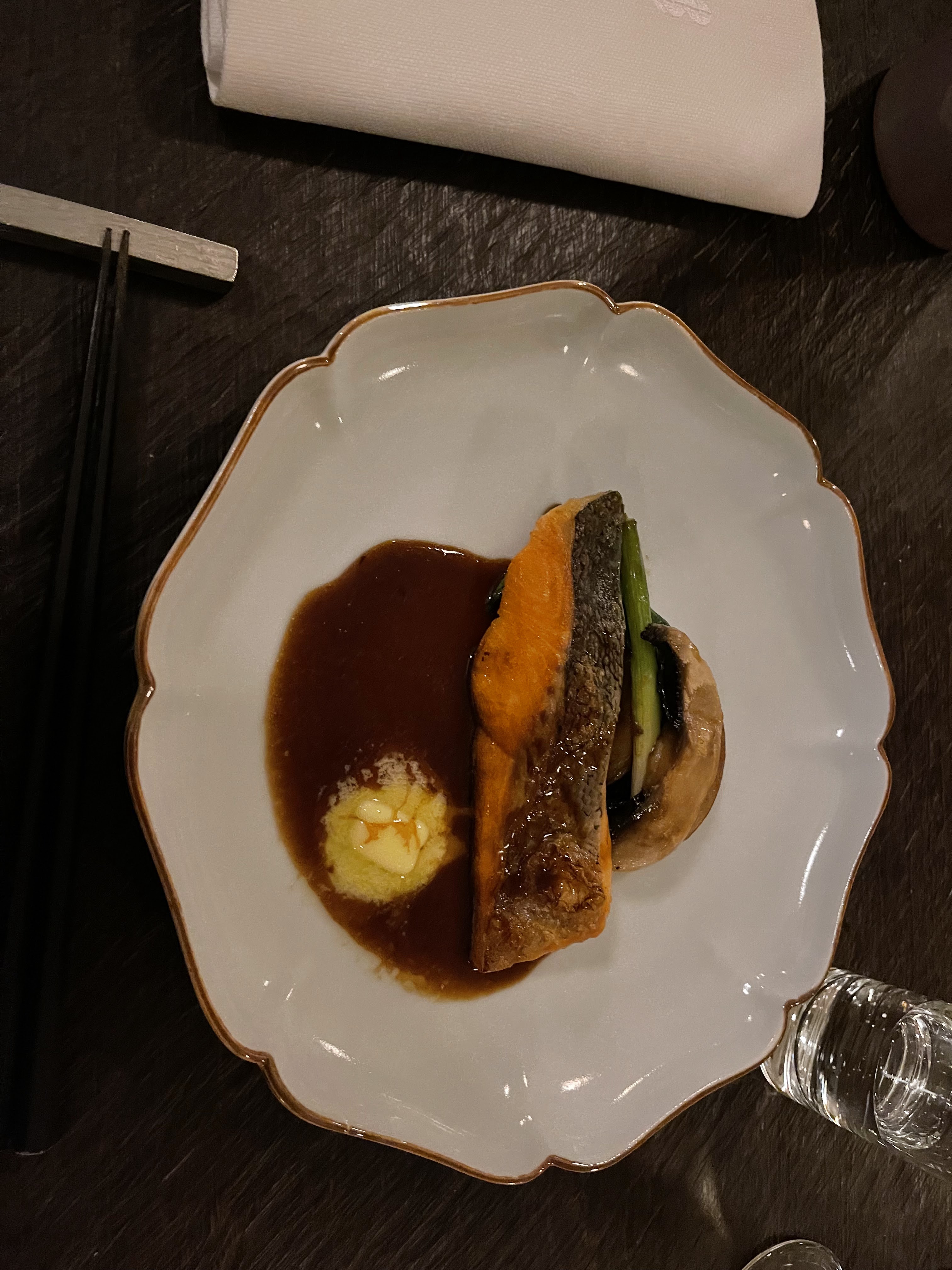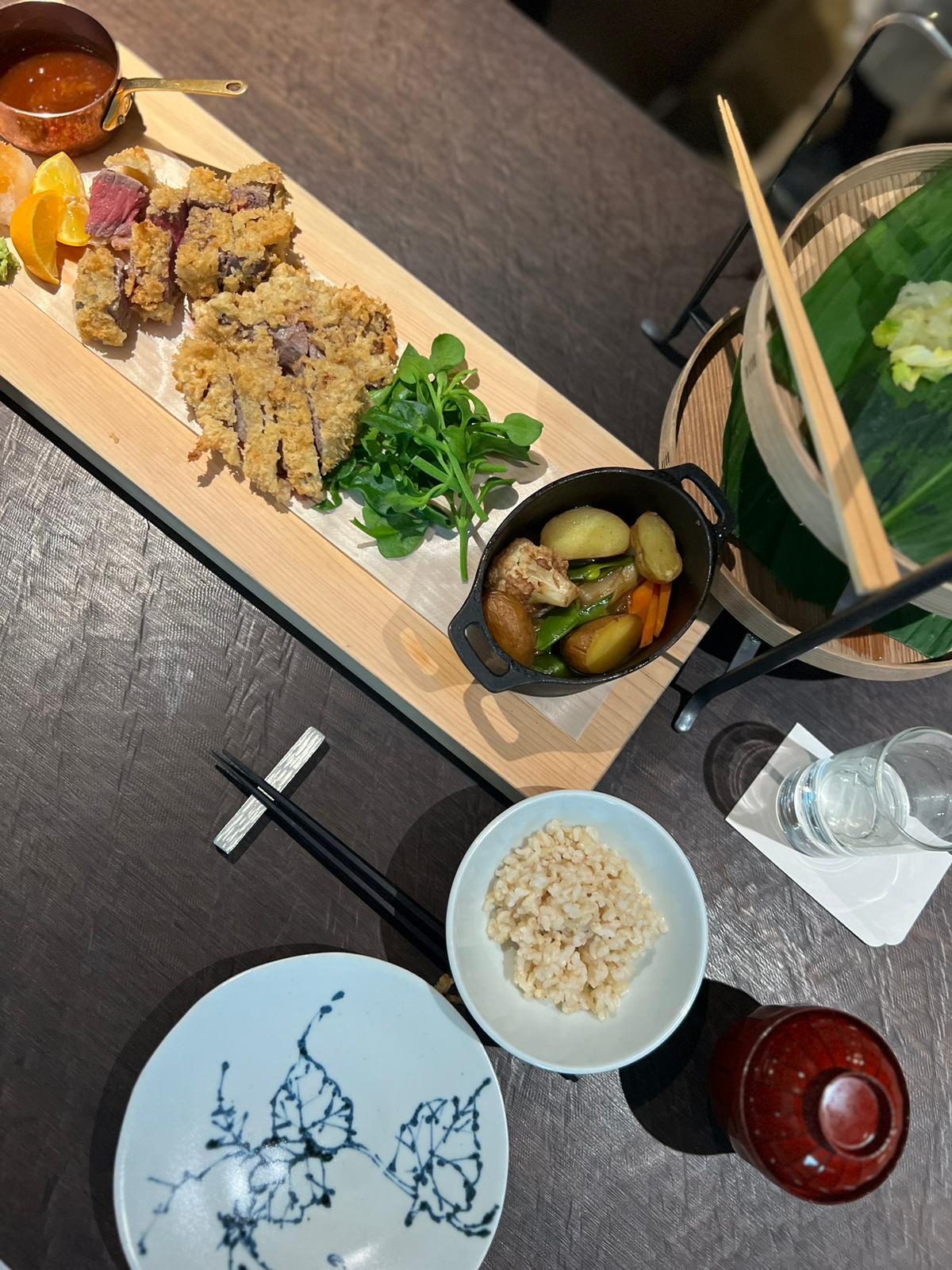 C’est avant tout un lieu incroyable de sérénités on est transporté ailleurs.L’ambiance est japonaise et l’accueil protocolaire mais convivial on se sent accueilli et objet de toutes les attentions. La cuisine raffinés enchaînements des plats au timing juste. Un bonheur. Dommage que ce calme soit perturbé par des touristes bruyants.Ce lieu mérite le silence afin de s’imprégner du lieu et de sa cuisine.Bravo à l’architecte restaurateur à son chef et son jeune directeur franco/japonais au français parfait et à l’attention exemplaire.