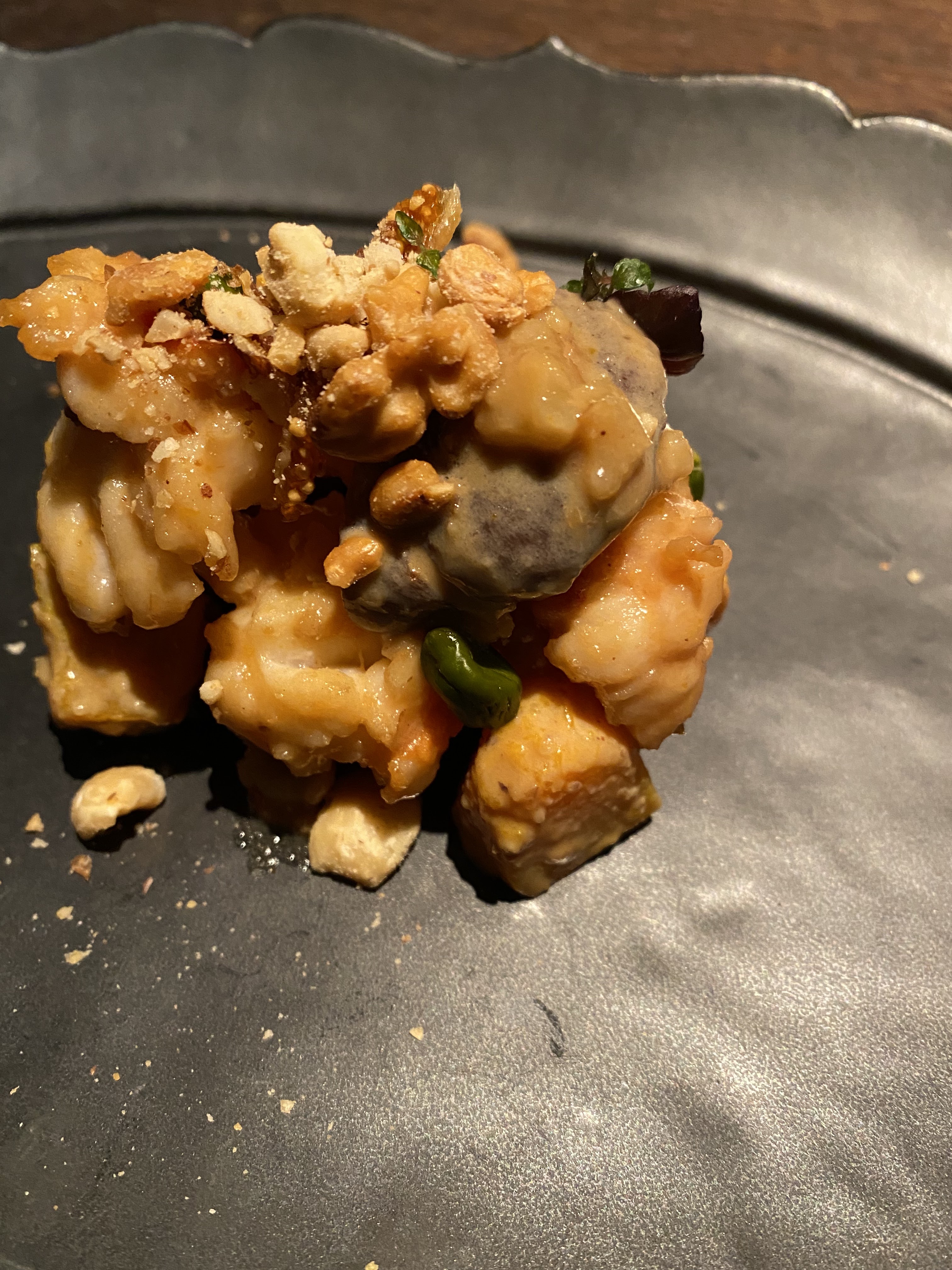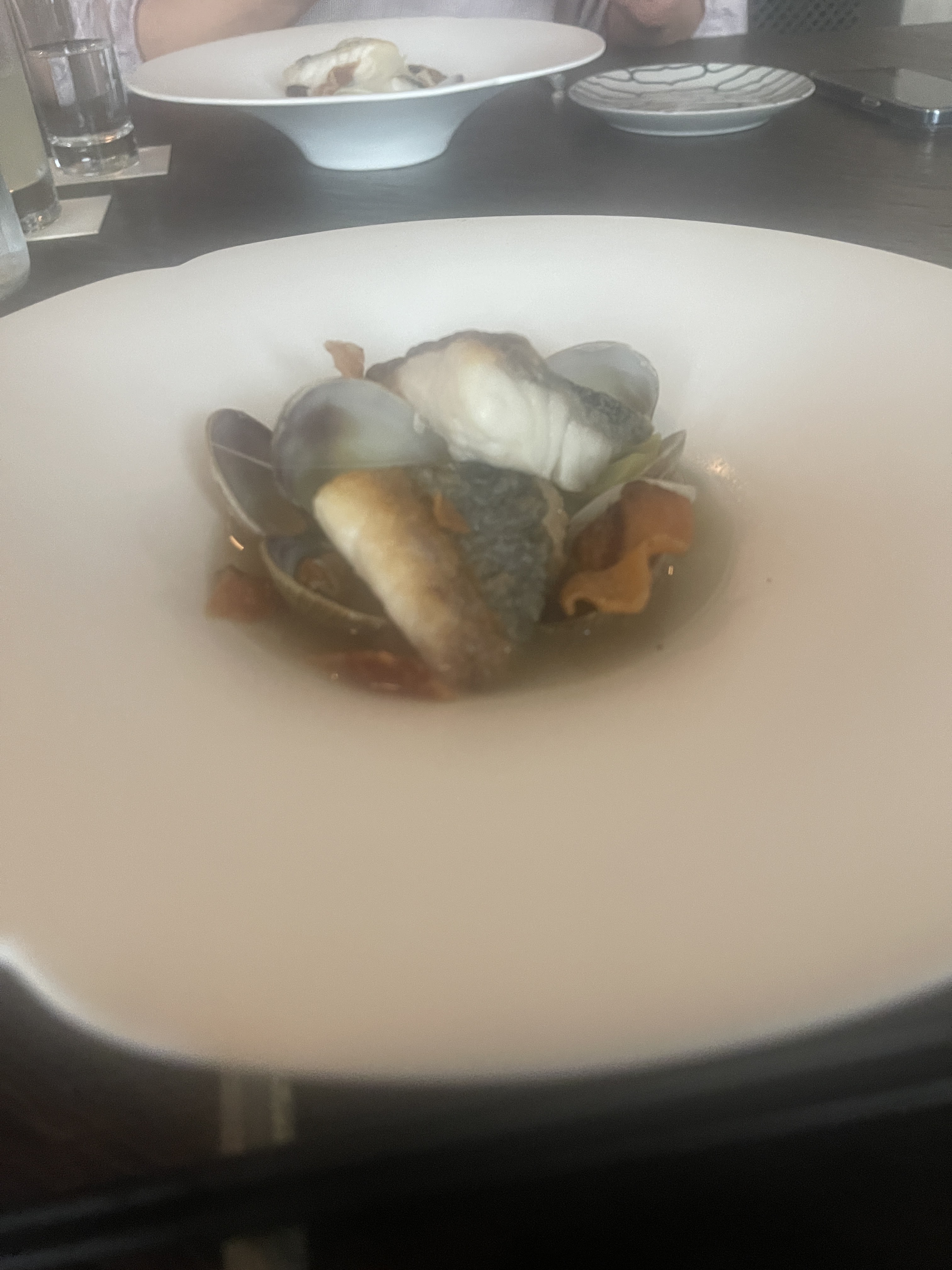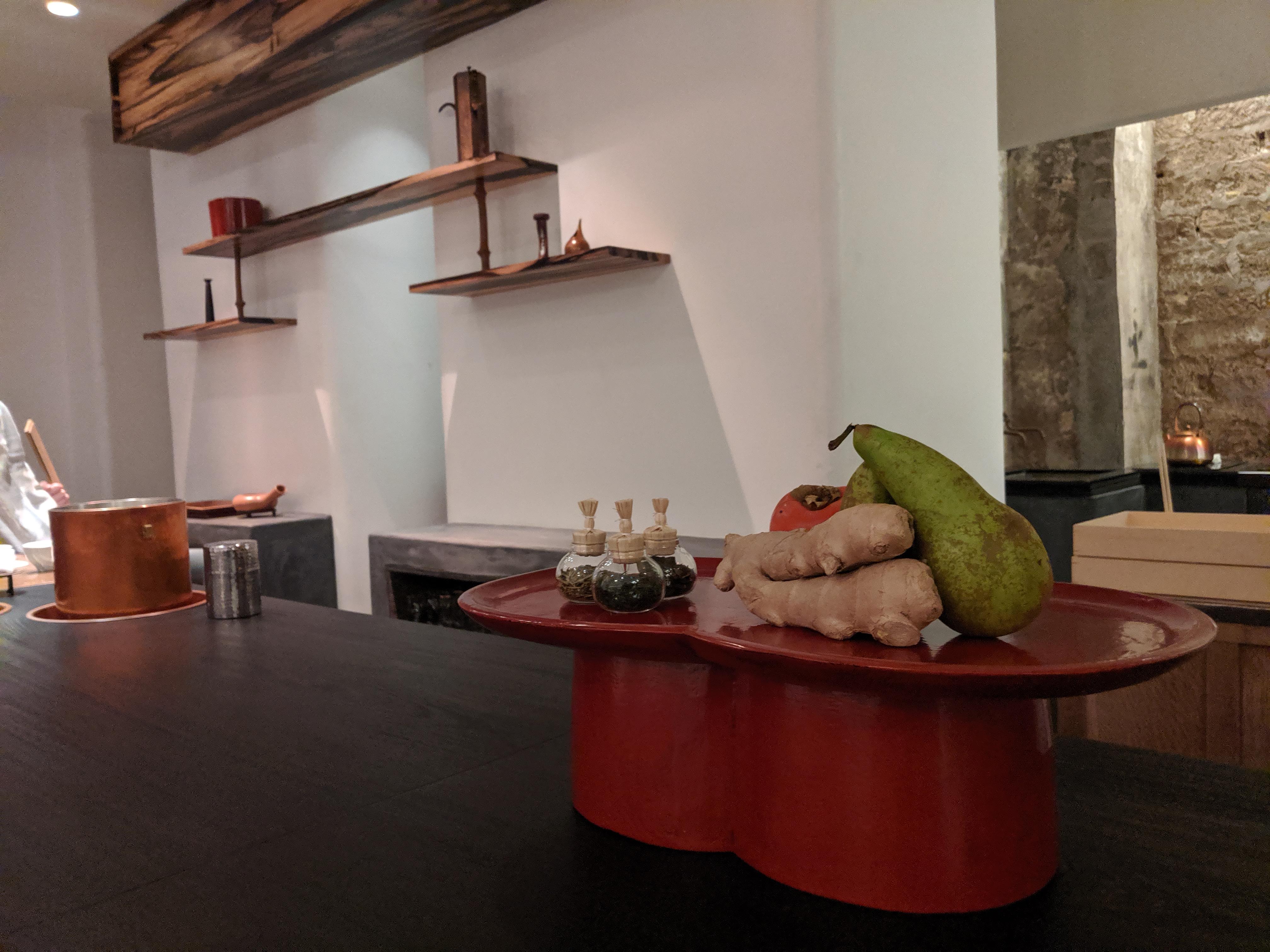 Le restaurant est très bien. On peut s’assoir autour de la cuisine et découvrir ses plats au fur et à mesure qu’ils sont préparés. Pour profiter pleinement il faut prendre le menu à 170€, ce qui peut revenir cher si l’on souhaite accompagner ses plats d’une ou deux boissons. Mais ça vaut le coup, de le découvrir ce restaurant, l’ambiance y est très calme et même si on est proches des autres clients, cela reste assez intimiste. Dommage que les autres commerces (bar et boutique) de l’immeuble étaient fermés lors dd notre passage.