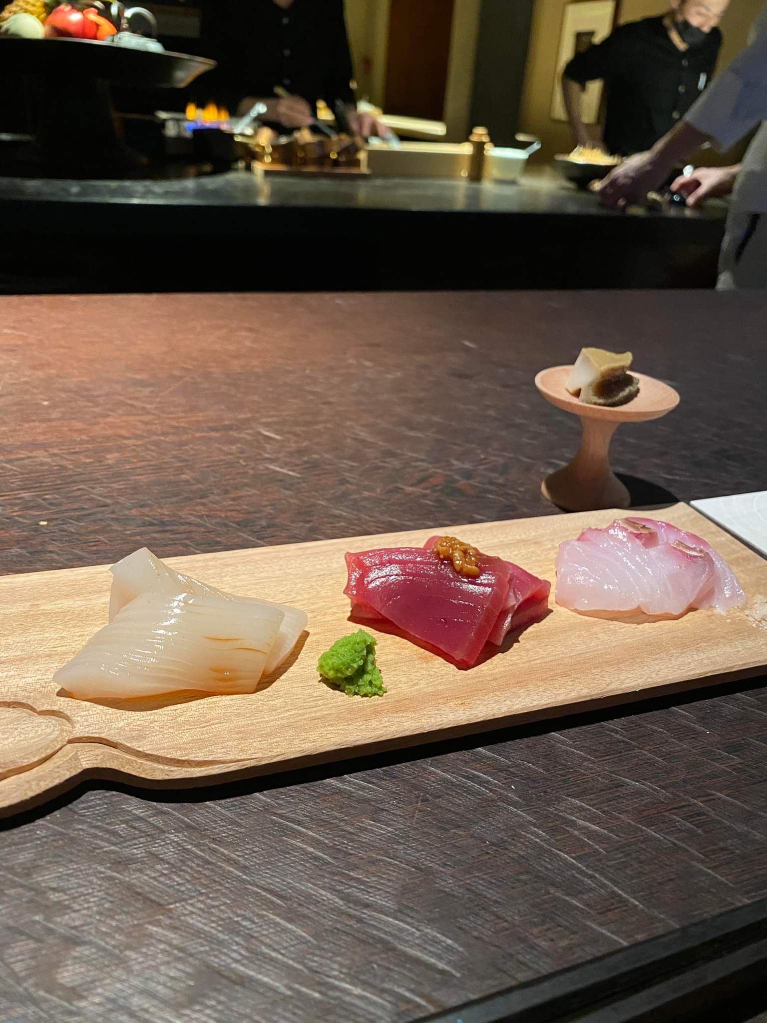 Très joli cadre mais j'étais venue pour la gastronomie : très grosse déception sur les plats (surtout pour le prix payé) : très fade, pas de découverte culinaire, la seule partie vraiment japonaise : les sashimis (et le bol de riz vers la fin). Si vous souhaitez faire une vrai voyage gastronomique au Japon, pour un prix beaucoup plus abordable, je conseille plutôtTsukizi ou Benkay.